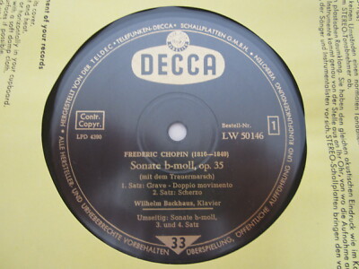 10" / FREDERIC CHOPIN / SONATE B-MOLL / WILHELM BACKHAUS / DECCA / RAR /