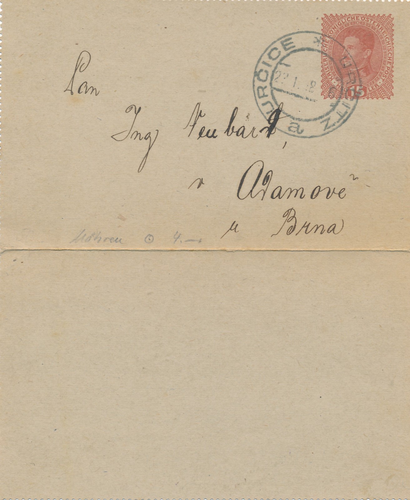 15 Heller Ganzsachen - Kartenbrief - Karte aus Urcice (16269)