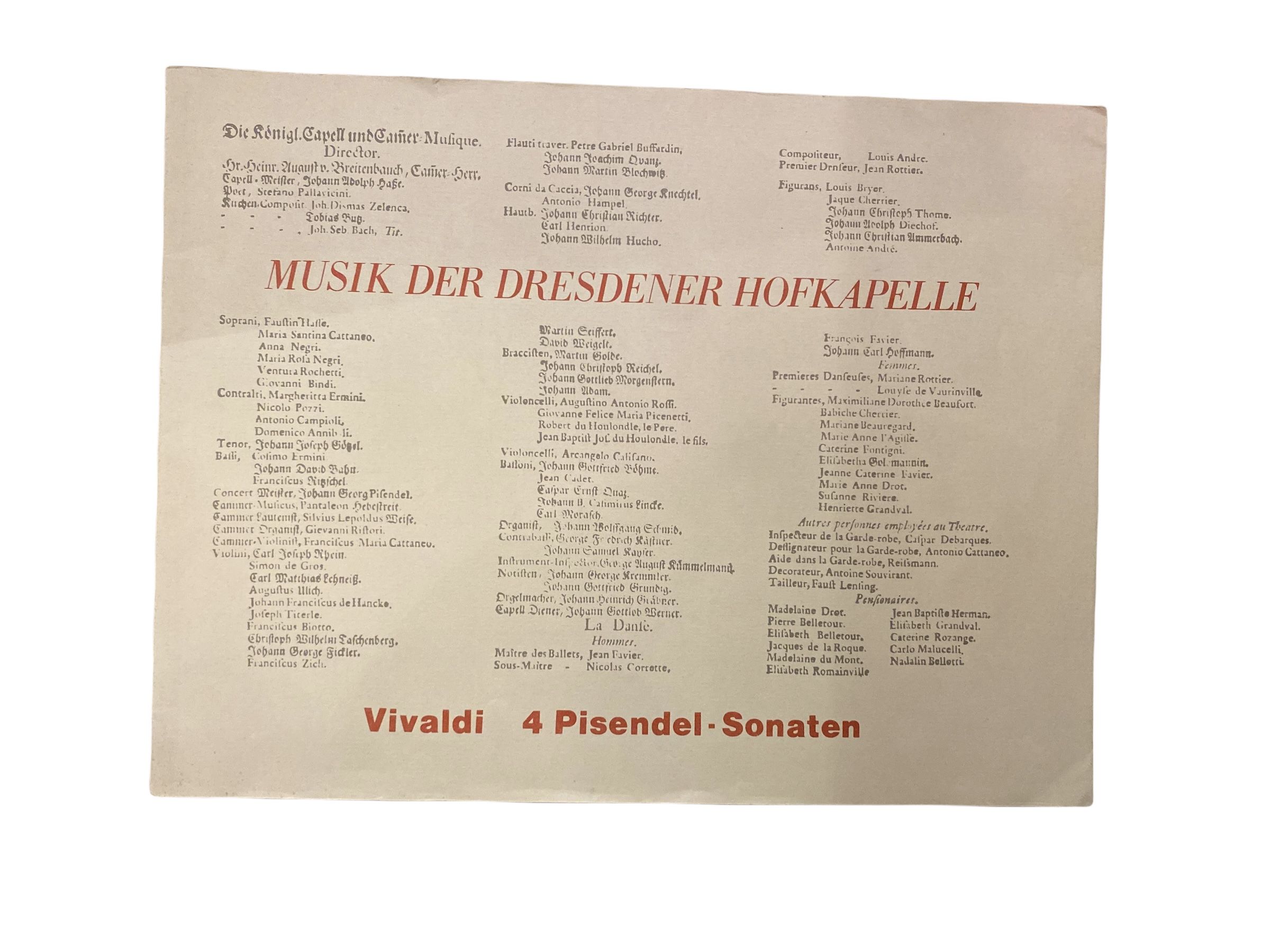 1929 MUSIK DER DRESDENER HOFKAPELLE. VIVALDI 4 PISENDEL-SONATEN
