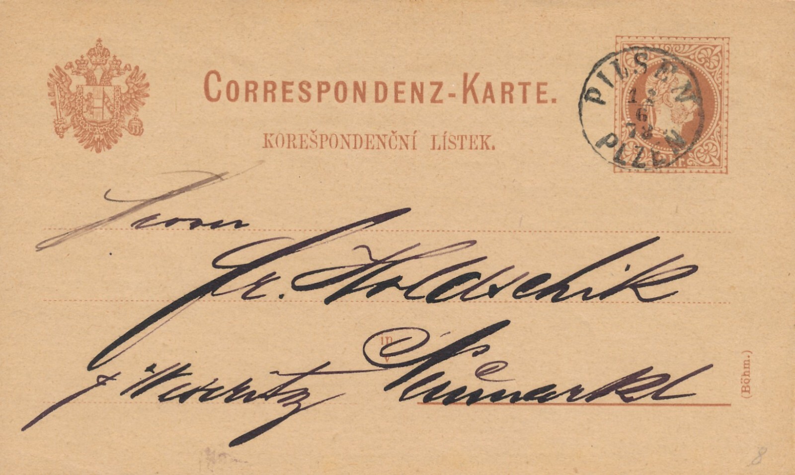 2 Kreuzer - Ganzsachen Karte 1878 aus Pilsen (11150)