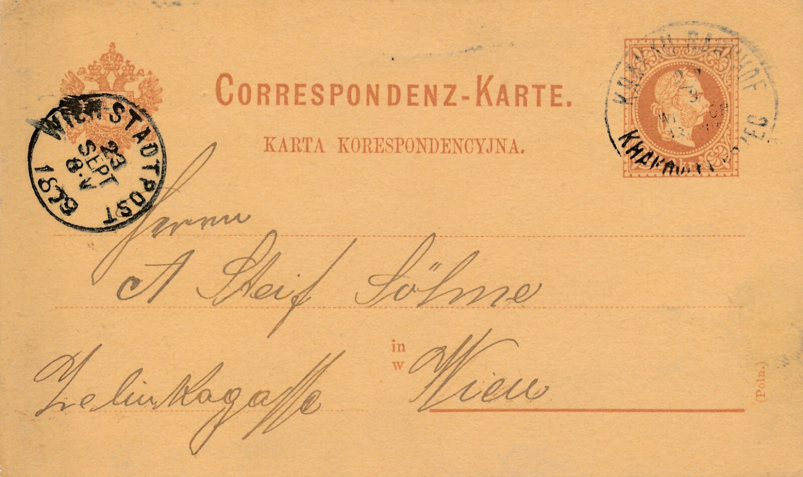 2 Kreuzer - Ganzsachen - Karte 1879 aus Krakau - Krakow Bahnhof (13549)