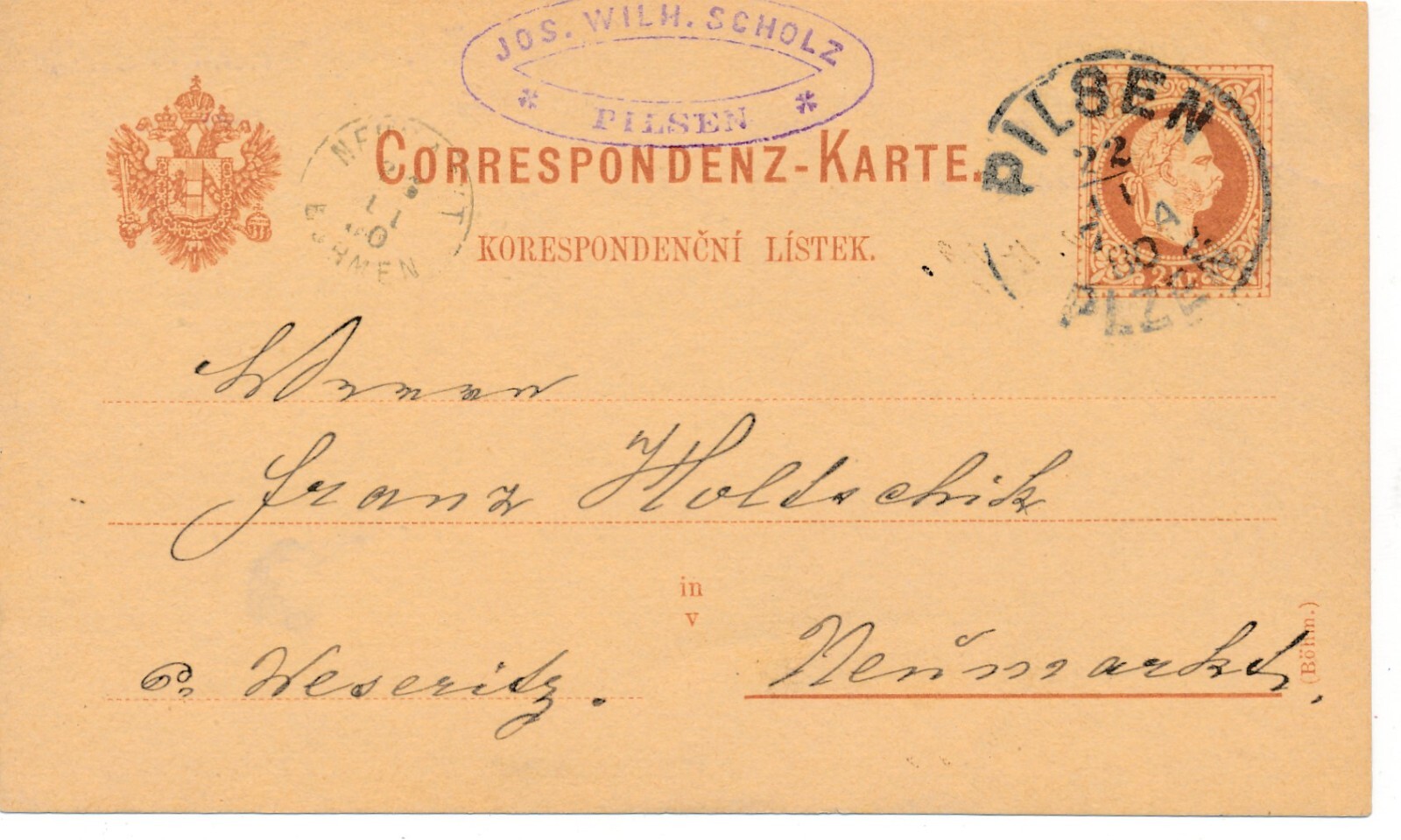 2 Kreuzer - Ganzsachen - Karte 1880 aus Pilsen (10100)
