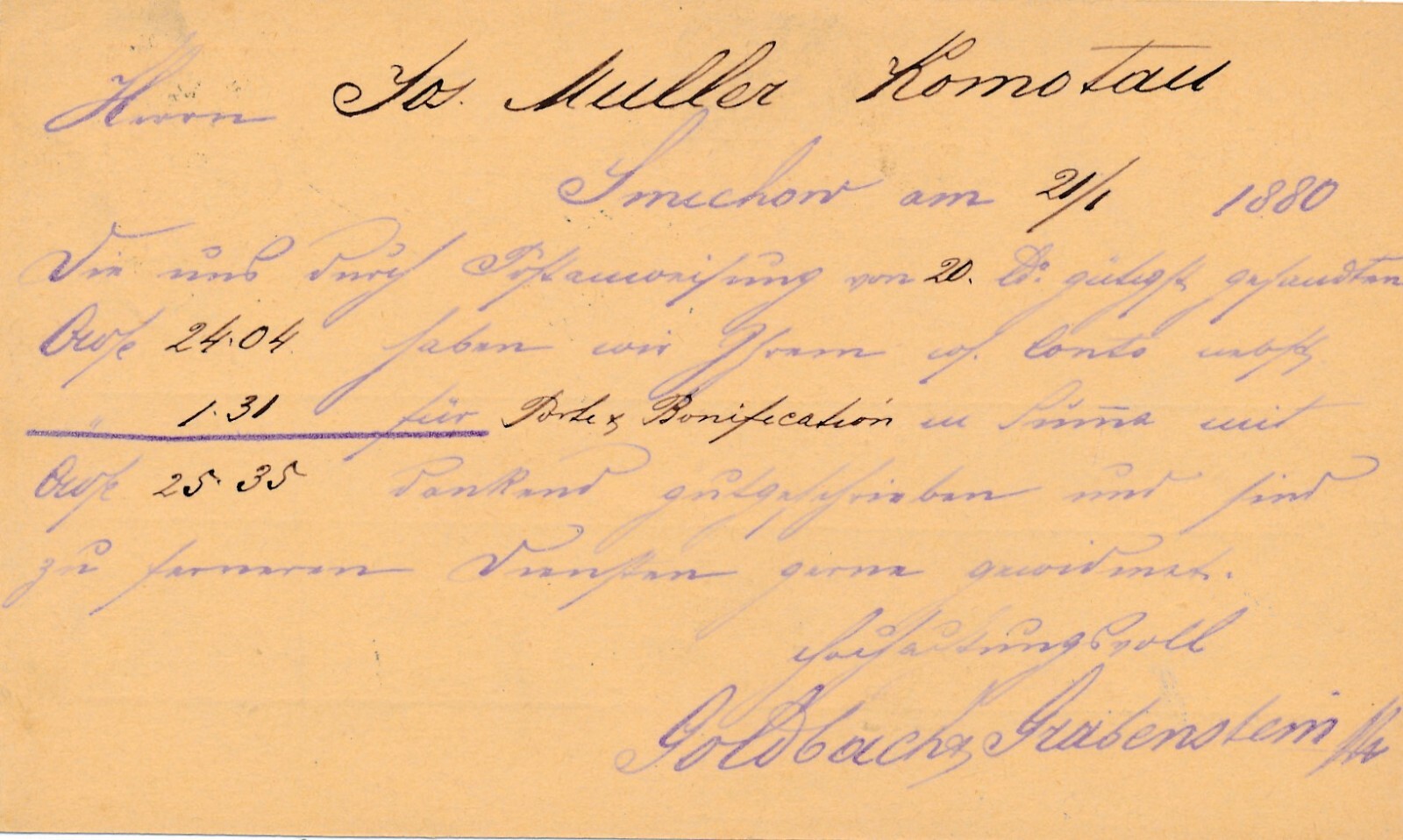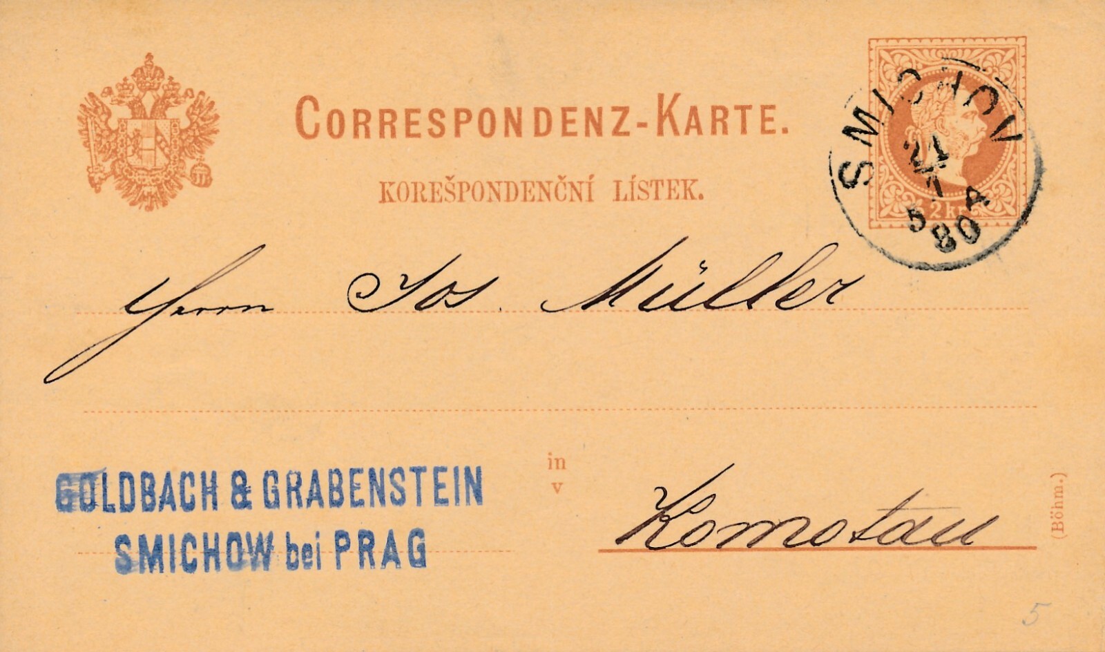2 Kreuzer - Ganzsachen - Karte 1880 aus Smichov (13566)