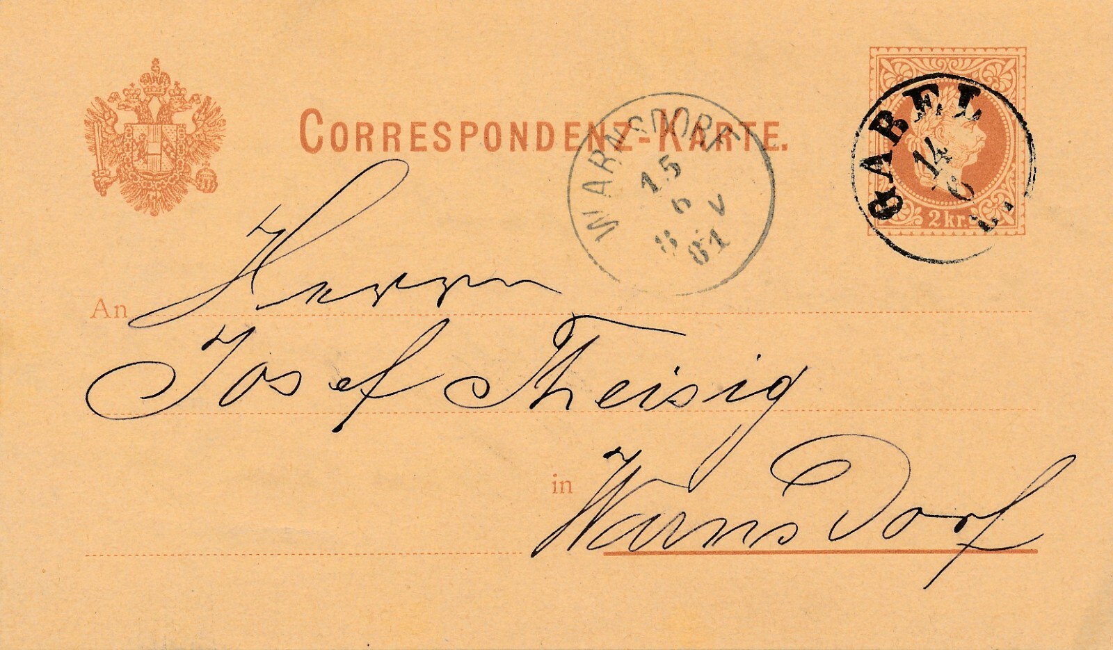 2 Kreuzer Ganzsachen - Karte 1881 aus Gabel (10522)