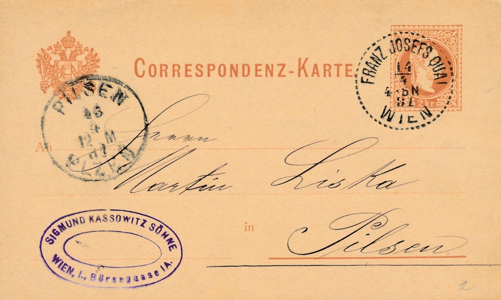 2 Kreuzer Ganzsachen - Karte 1881 aus Wien Franz Josef Quai (11182)