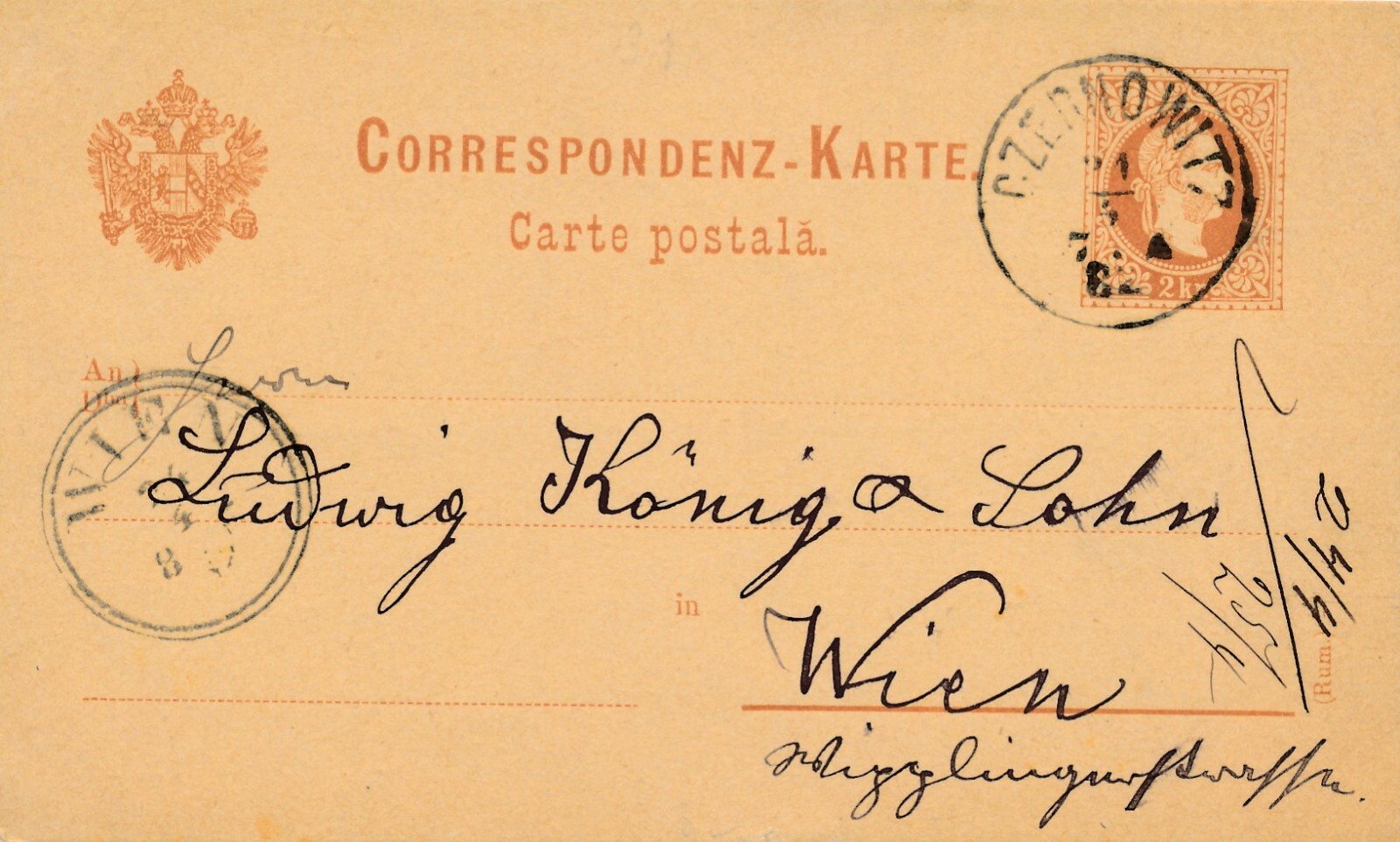2 Kreuzer Ganzsachen - Karte 1882 aus Czernowitz (10449)