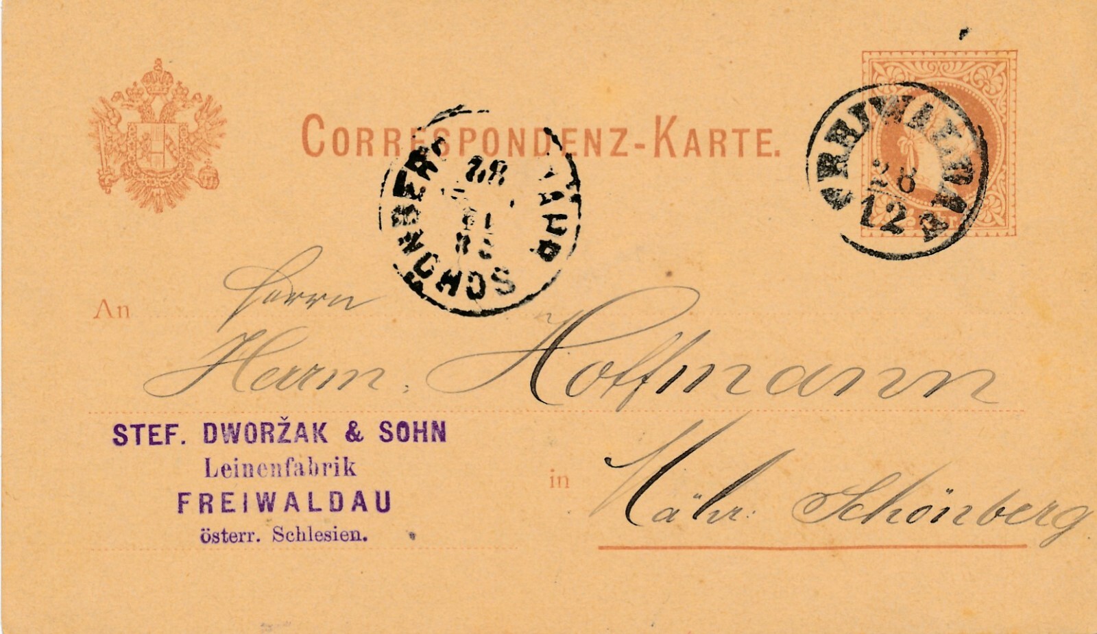 2 Kreuzer - Ganzsachen - Karte 1882 aus Freiwaldau (10666)