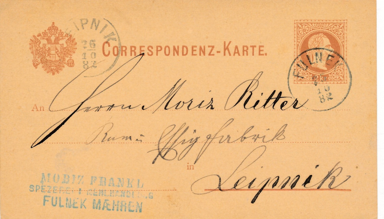 2 Kreuzer - Ganzsachen - Karte 1882 aus Fulnek (10134)