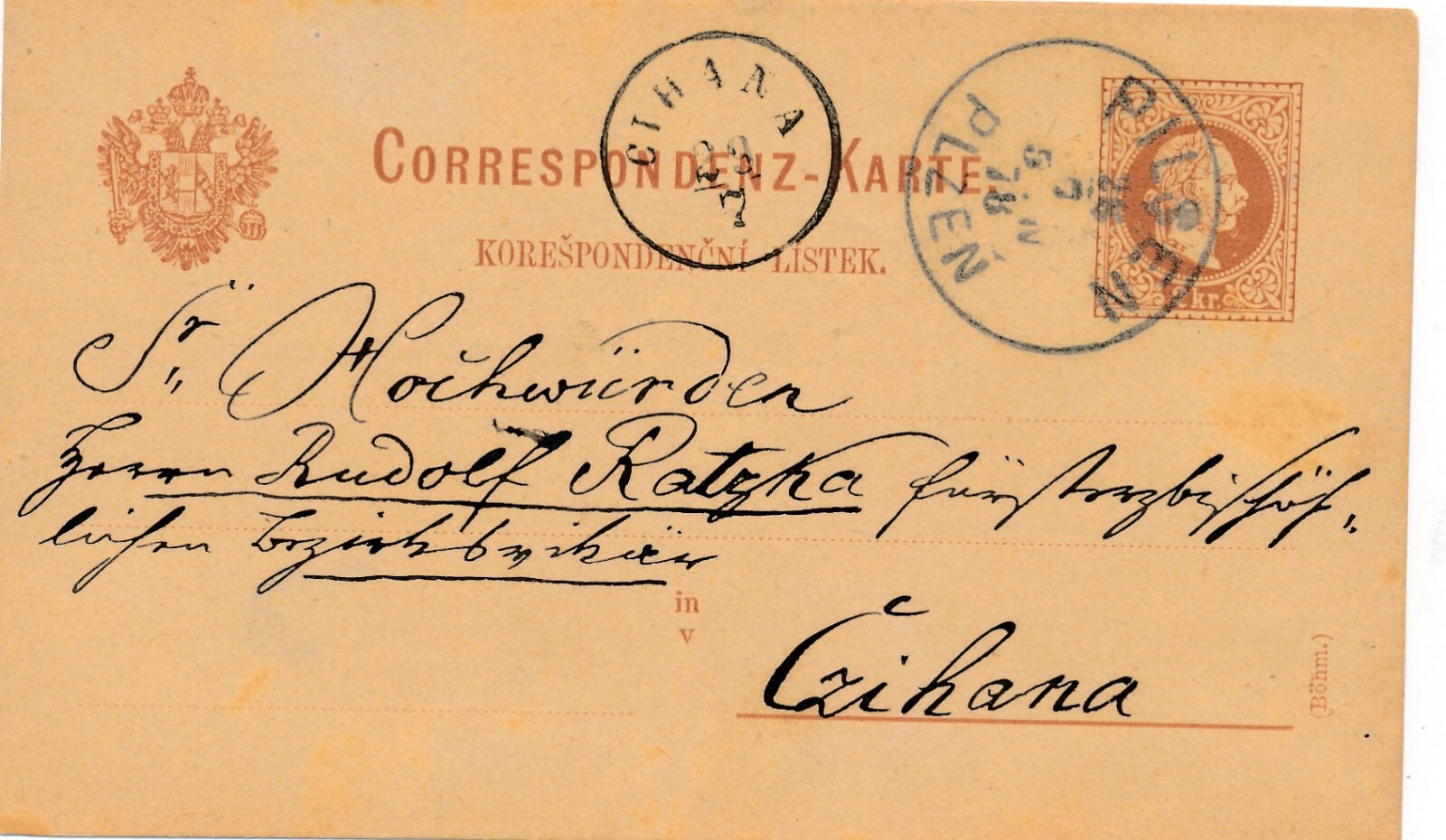 2 Kreuzer - Ganzsachen - Karte 1882 aus Pilsen - Pilzen (10114)
