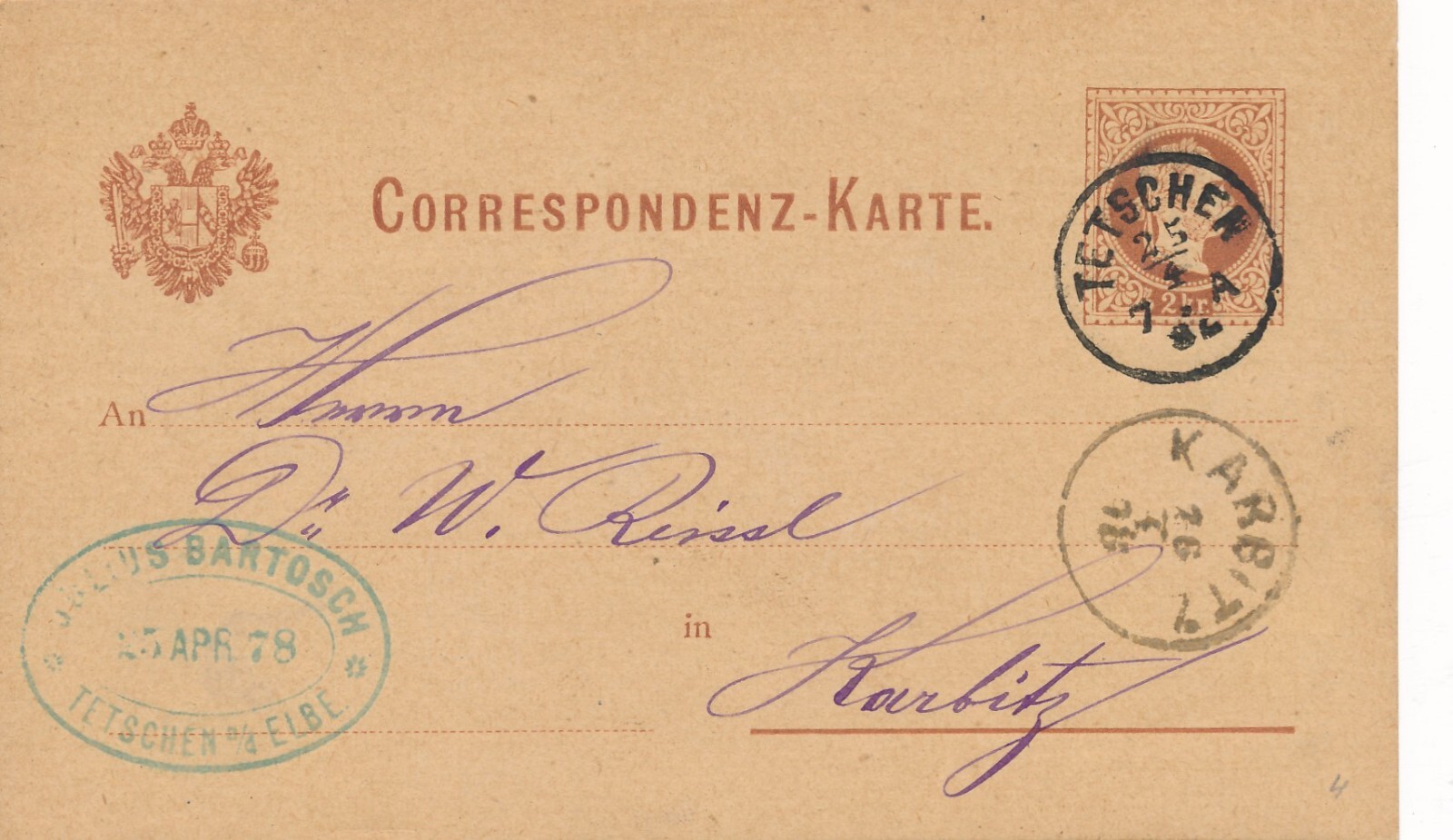 2 Kreuzer - Ganzsachen - Karte 1882 aus Tetschen (10118)