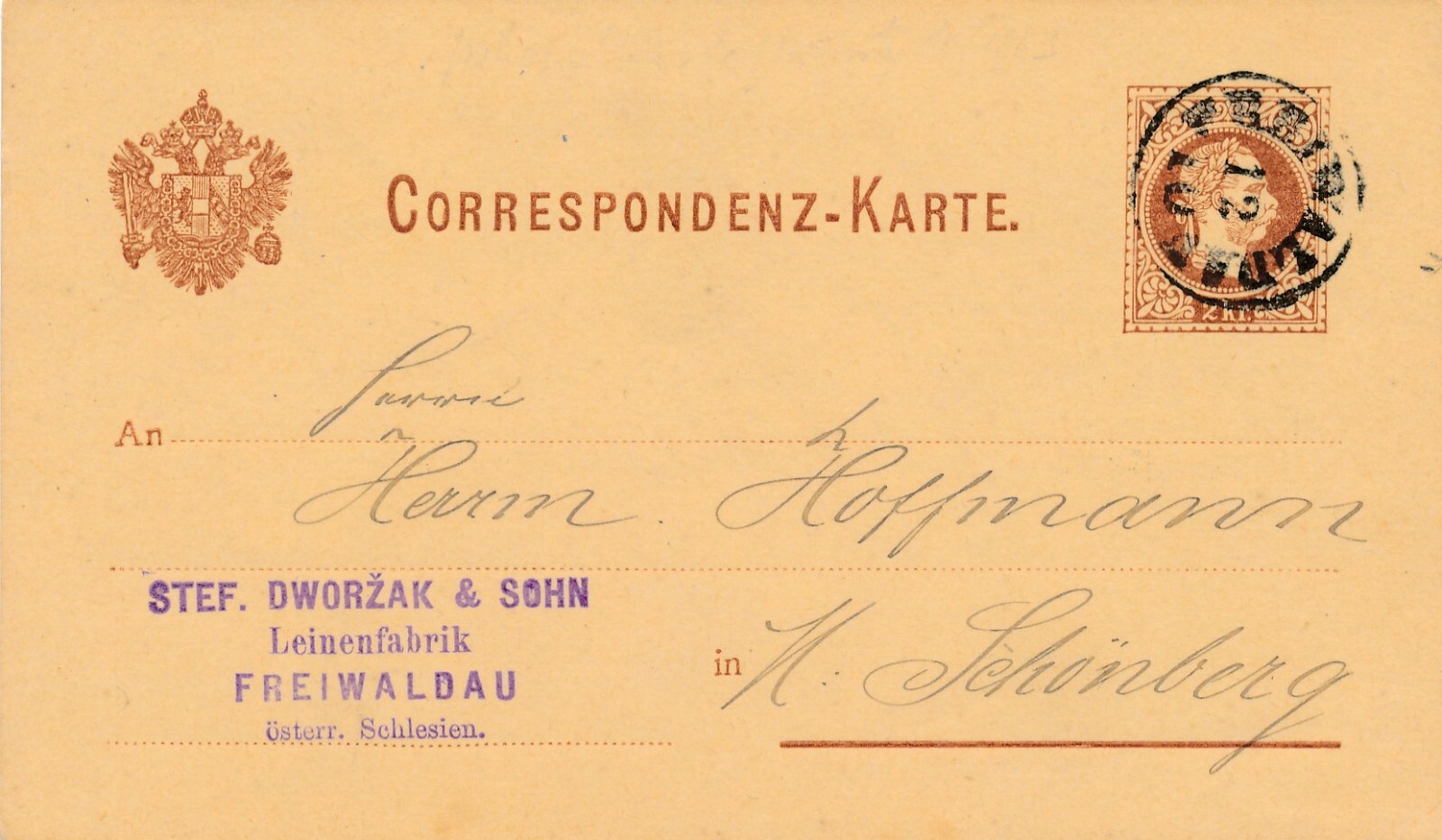 2 Kreuzer - Ganzsachen - Karte 1883 aus Freiwaldau (10665)