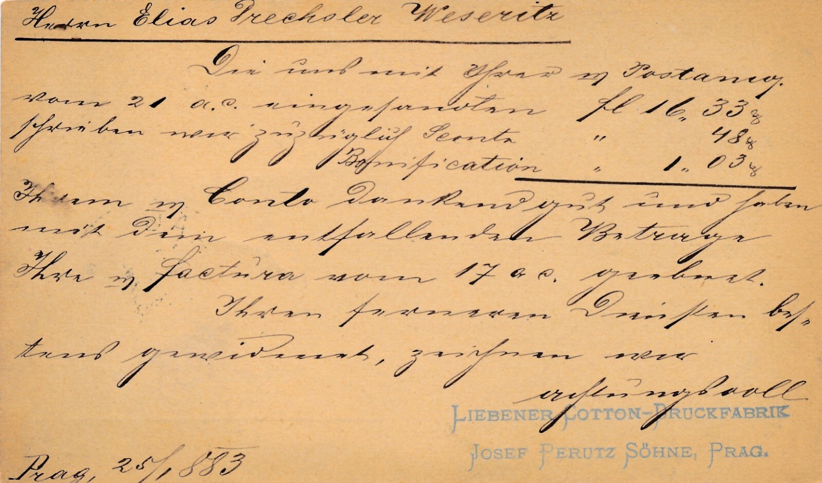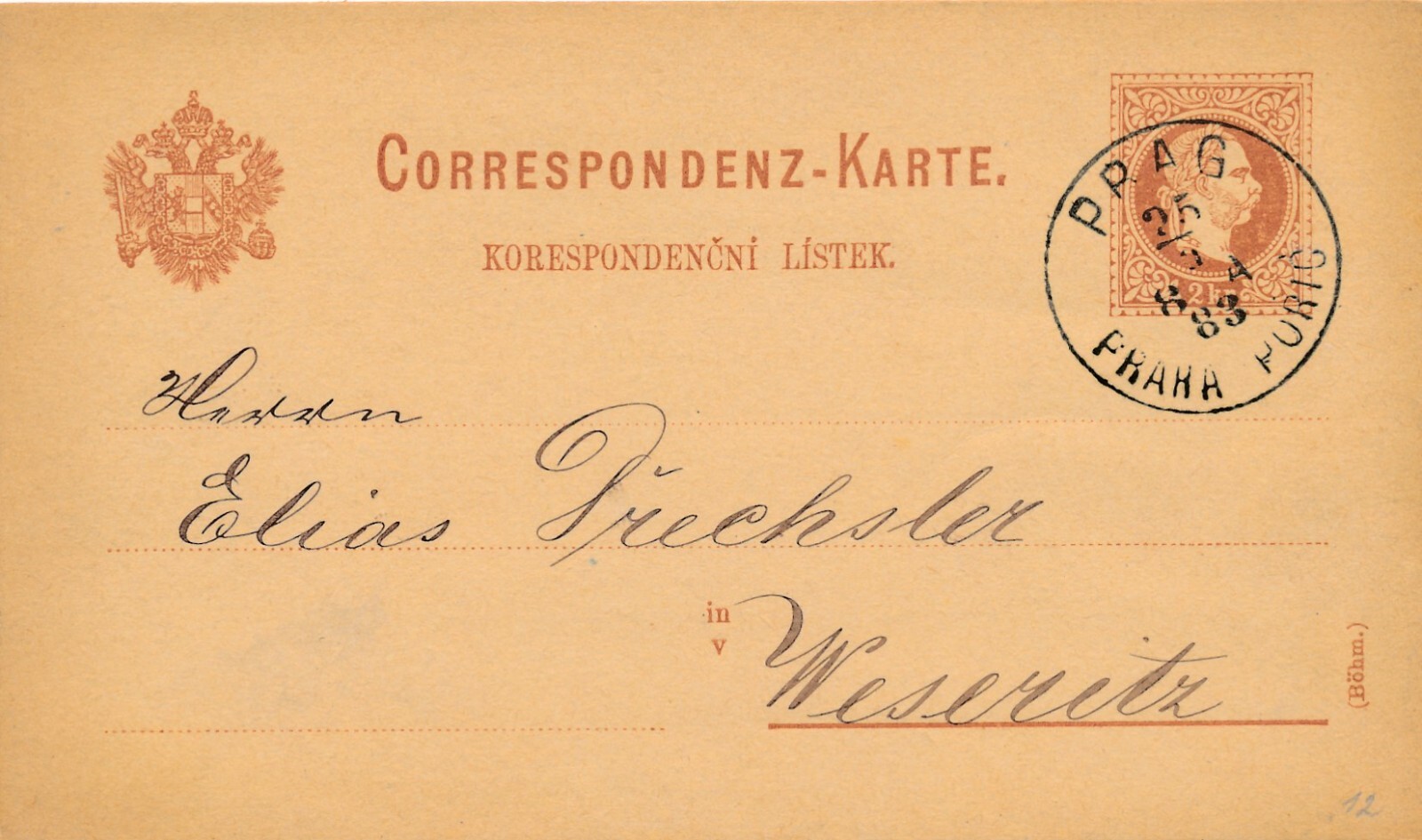 2 Kreuzer - Ganzsachen - Karte 1883 aus Praha Prag Poric (10141)