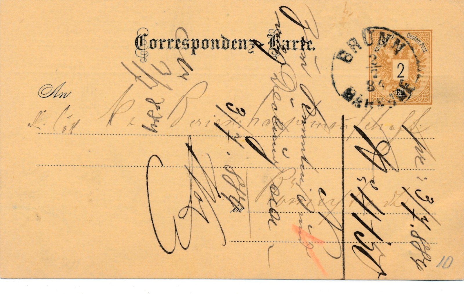 2 Kreuzer - Ganzsachen - Karte 1884 aus Brünn (10702)