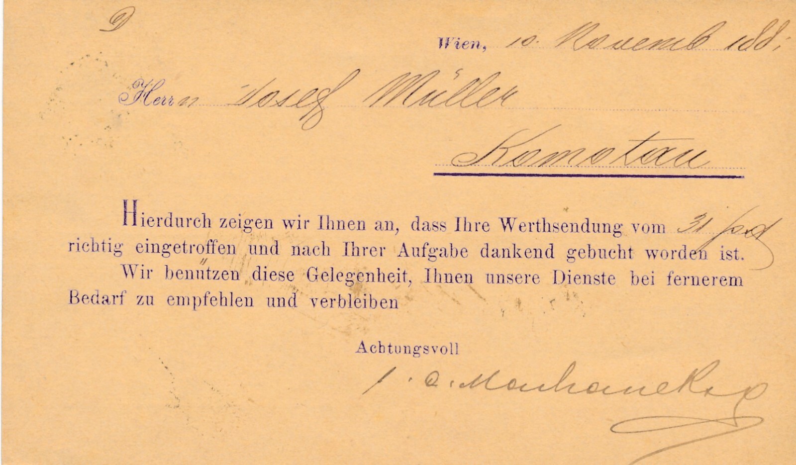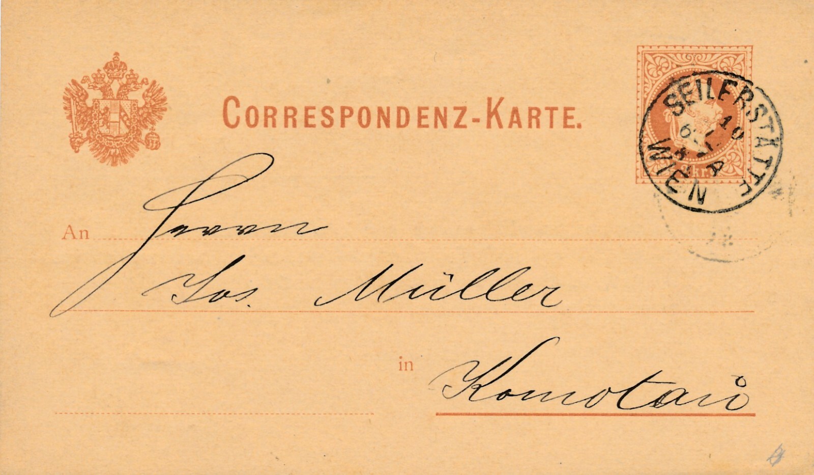 2 Kreuzer - Ganzsachen Karte 1885 aus Wien + Zudruck (11118)