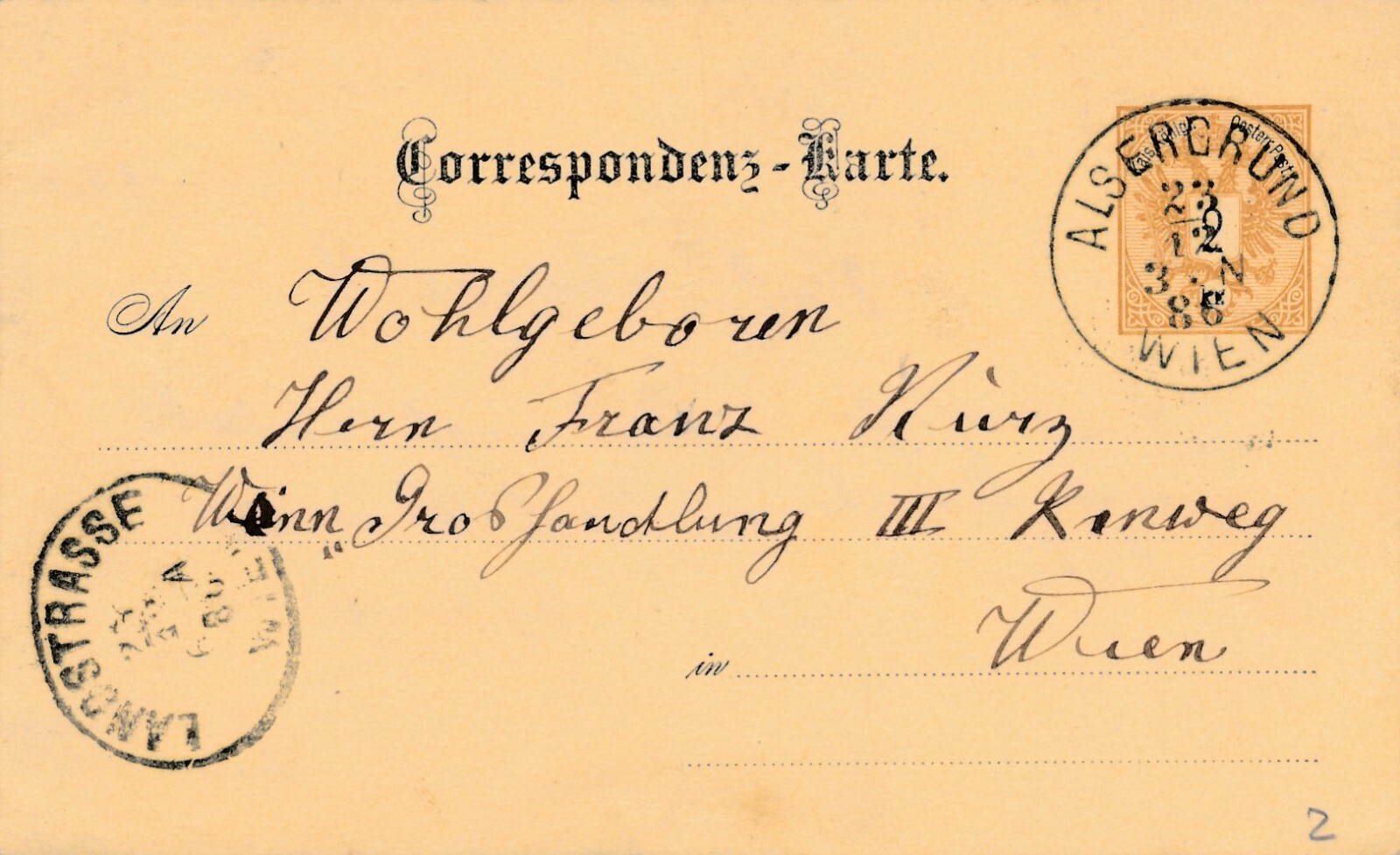 2 Kreuzer Ganzsachen - Karte 1886 aus Alsergrund Wien (12530)