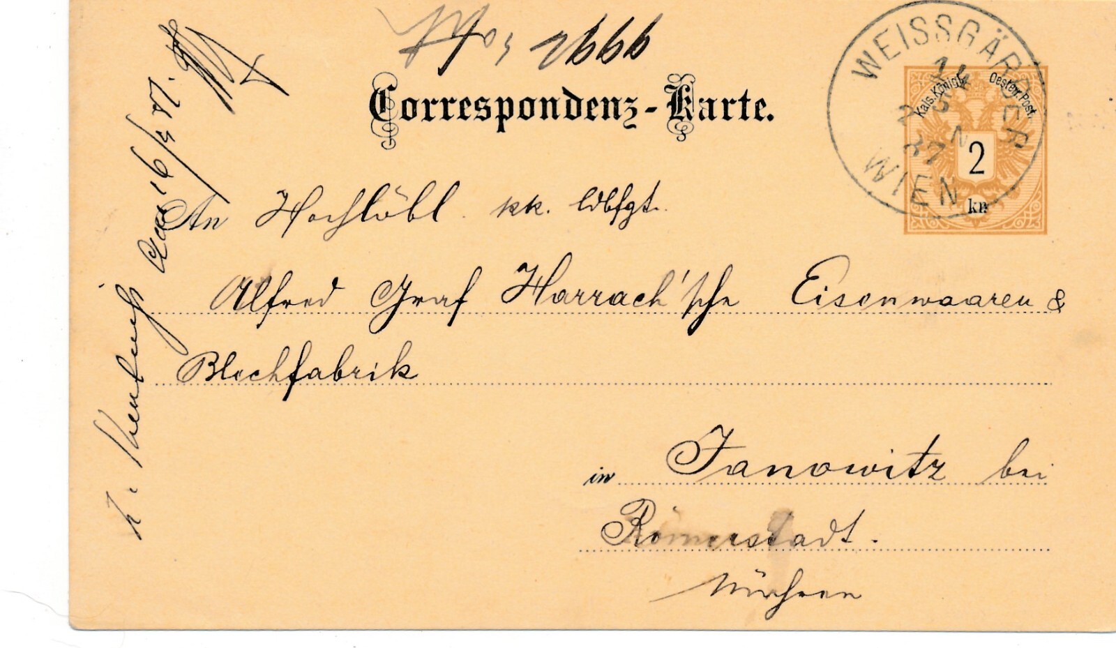2 Kreuzer - Ganzsachen - Karte 1887 aus Weissgräber (10676)