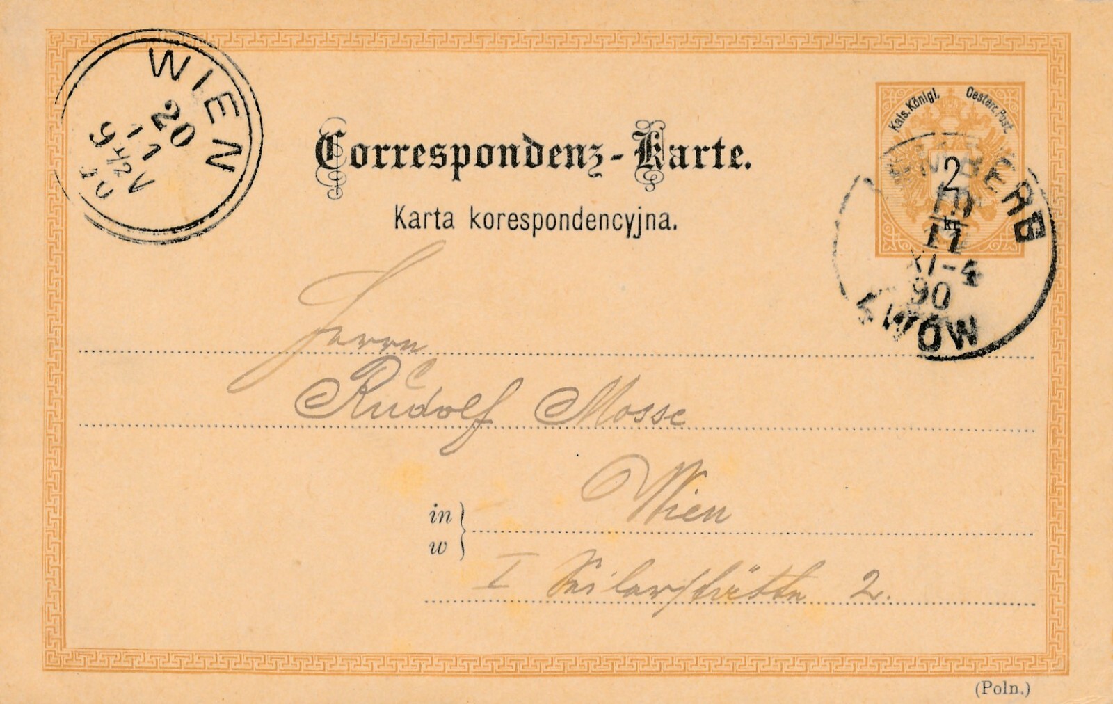 2 Kreuzer Ganzsachen - Karte 1890 aus Lemberg (11190)