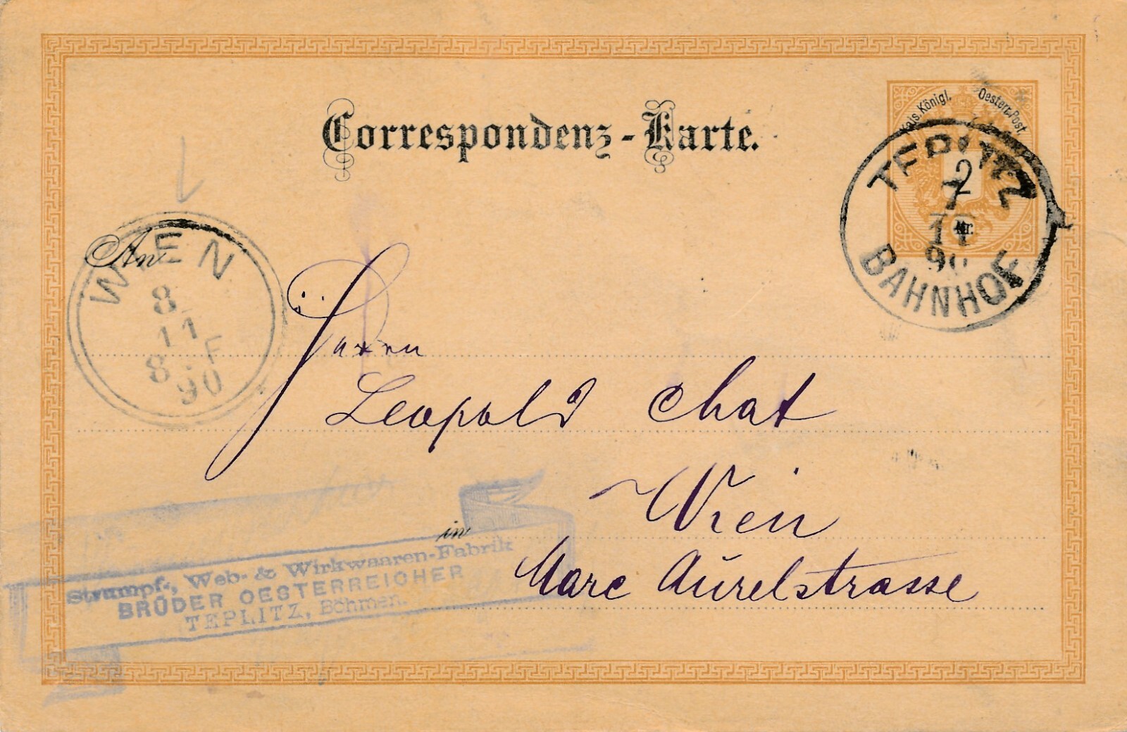 2 Kreuzer Ganzsachen - Karte 1890 aus Teplitz Bahnhof (11166)