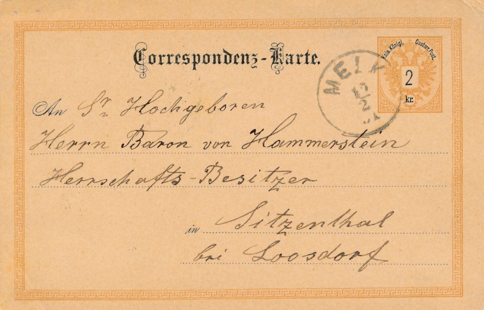 2 Kreuzer - Ganzsachen - Karte 1891 aus Melk (10694)