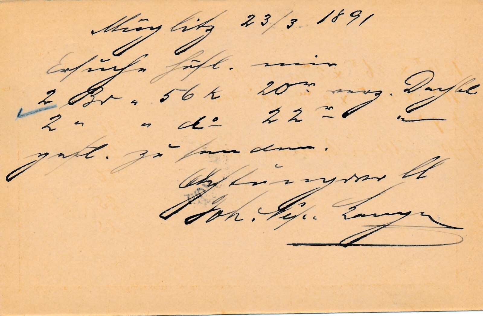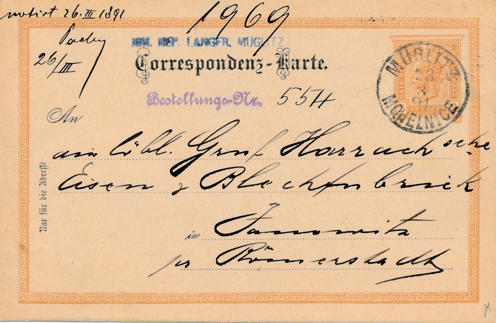 2 Kreuzer - Ganzsachen - Karte 1891 aus Müglitz Mohelnice (13354)