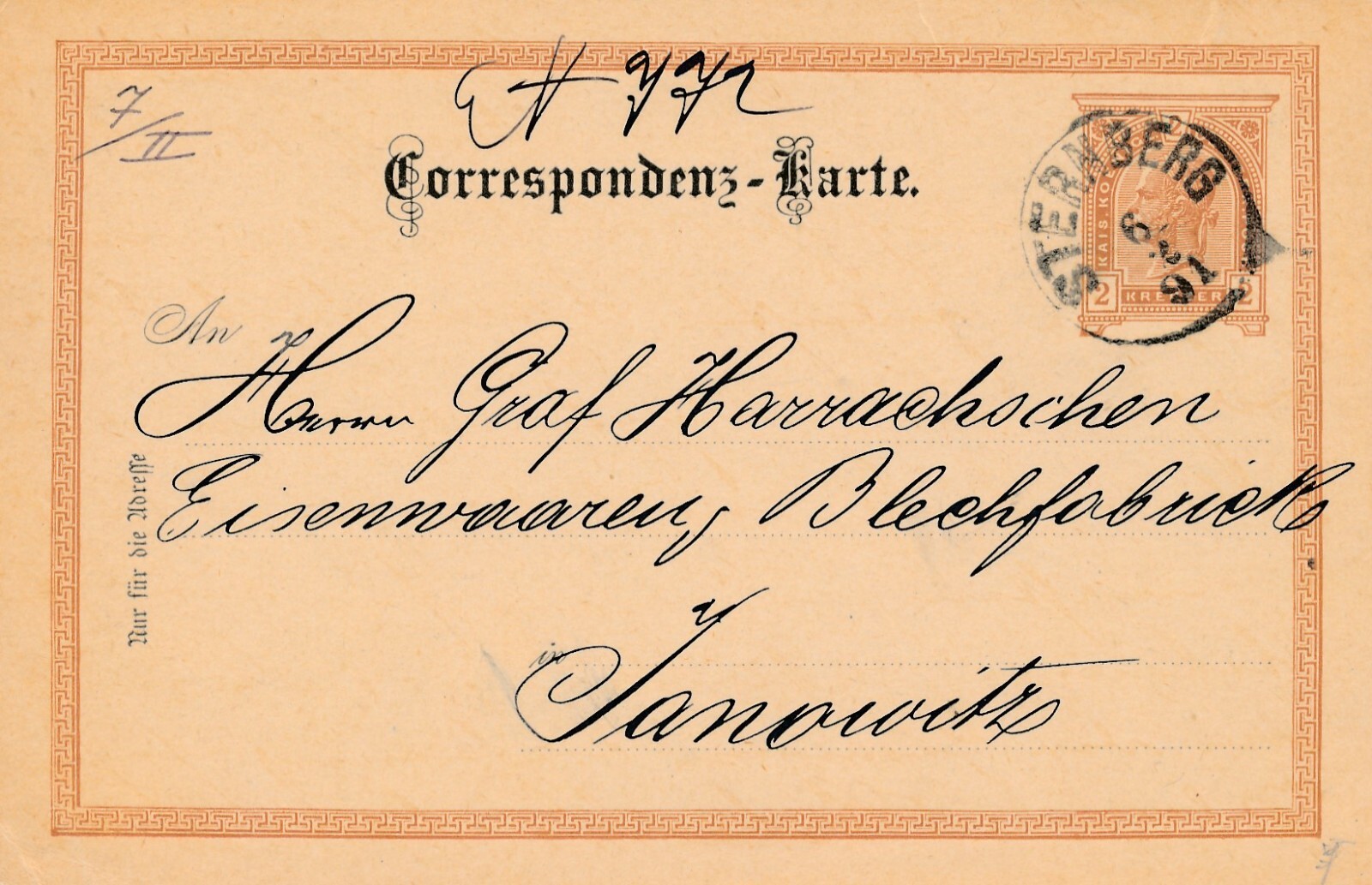 2 Kreuzer - Ganzsachen - Karte 1891 aus Sternberg (10672)