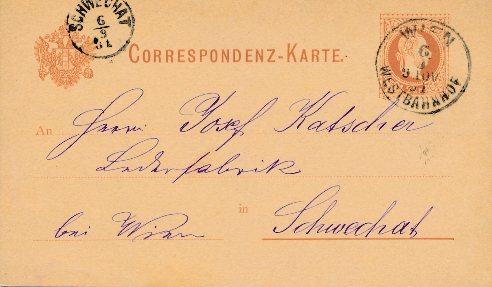 2 Kreuzer Ganzsachen - Karte 1891 aus Wien Westbahnhof (11167)