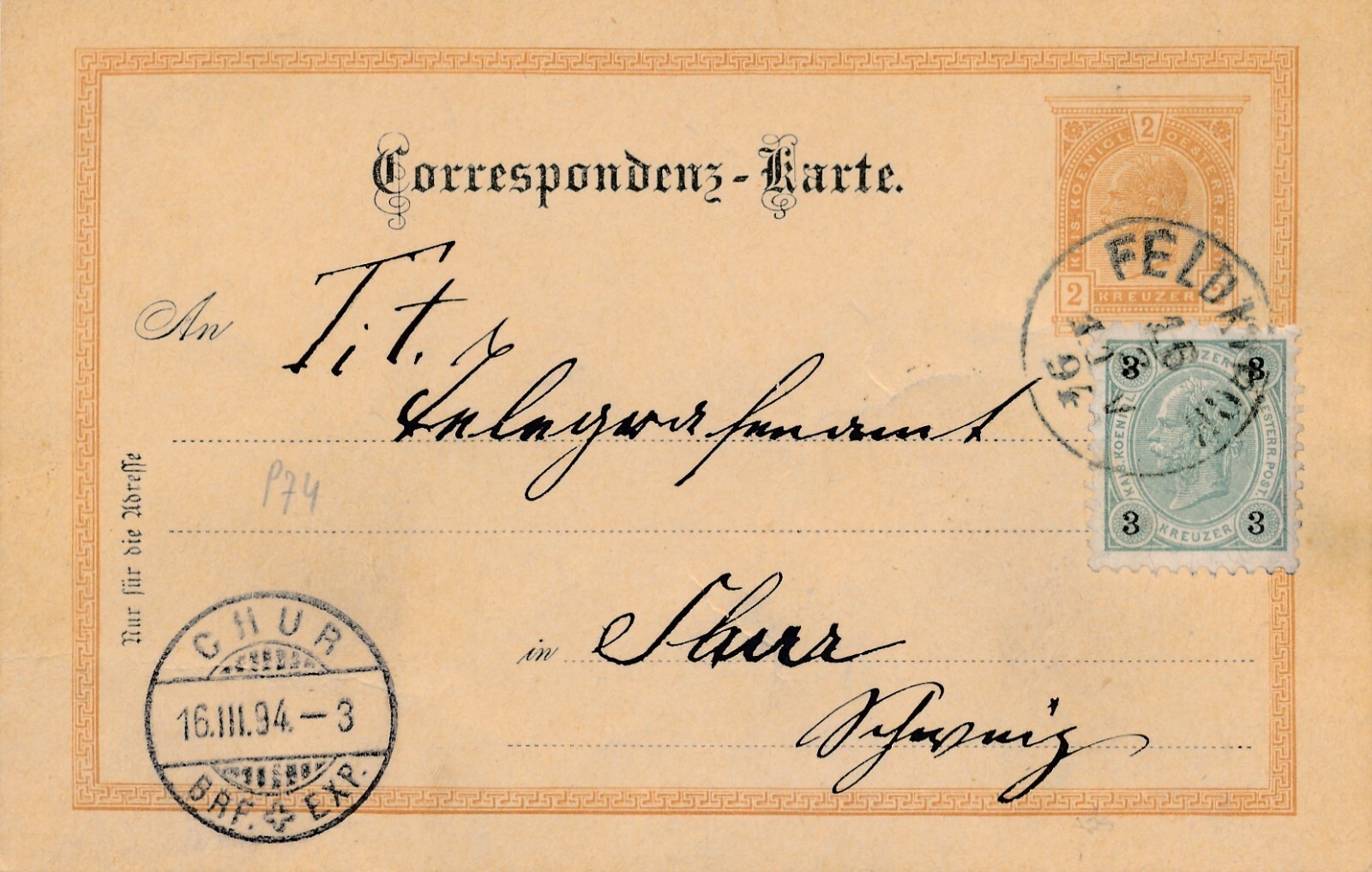 2 Kreuzer - Ganzsachen - Karte 1894 aus Feldkirch + 3 Kreuzer ZF (12305)