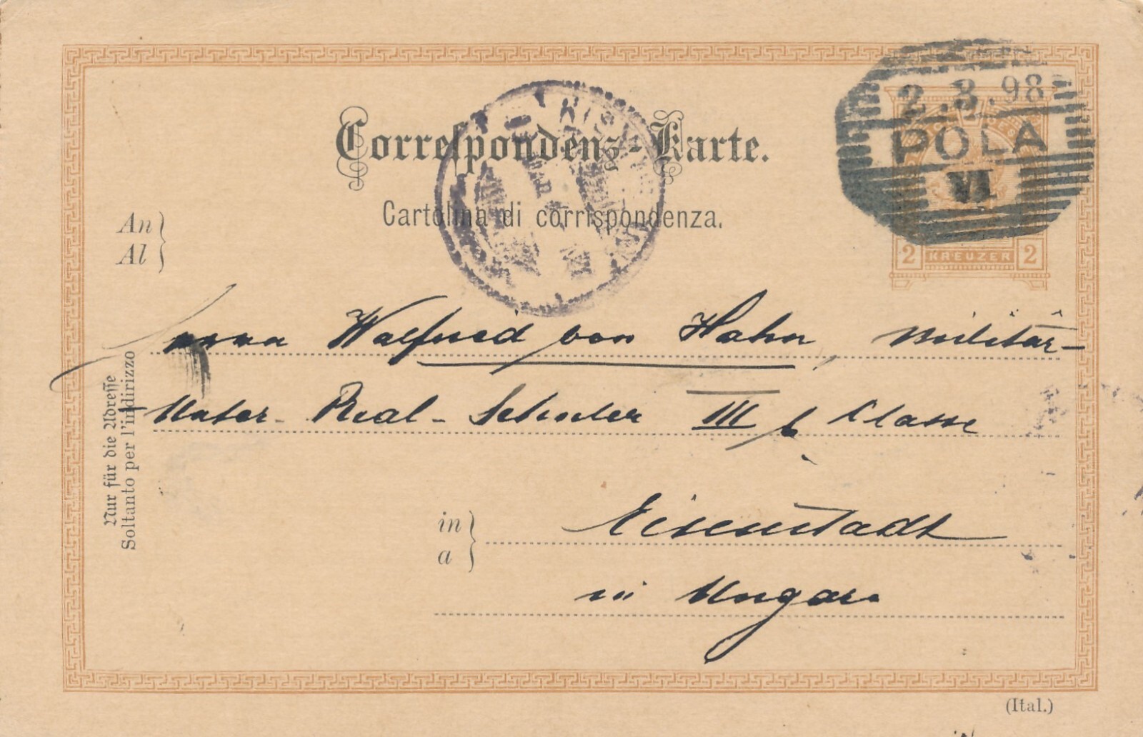 2 Kreuzer Ganzsachen - Karte 1898 aus Pola (8685)