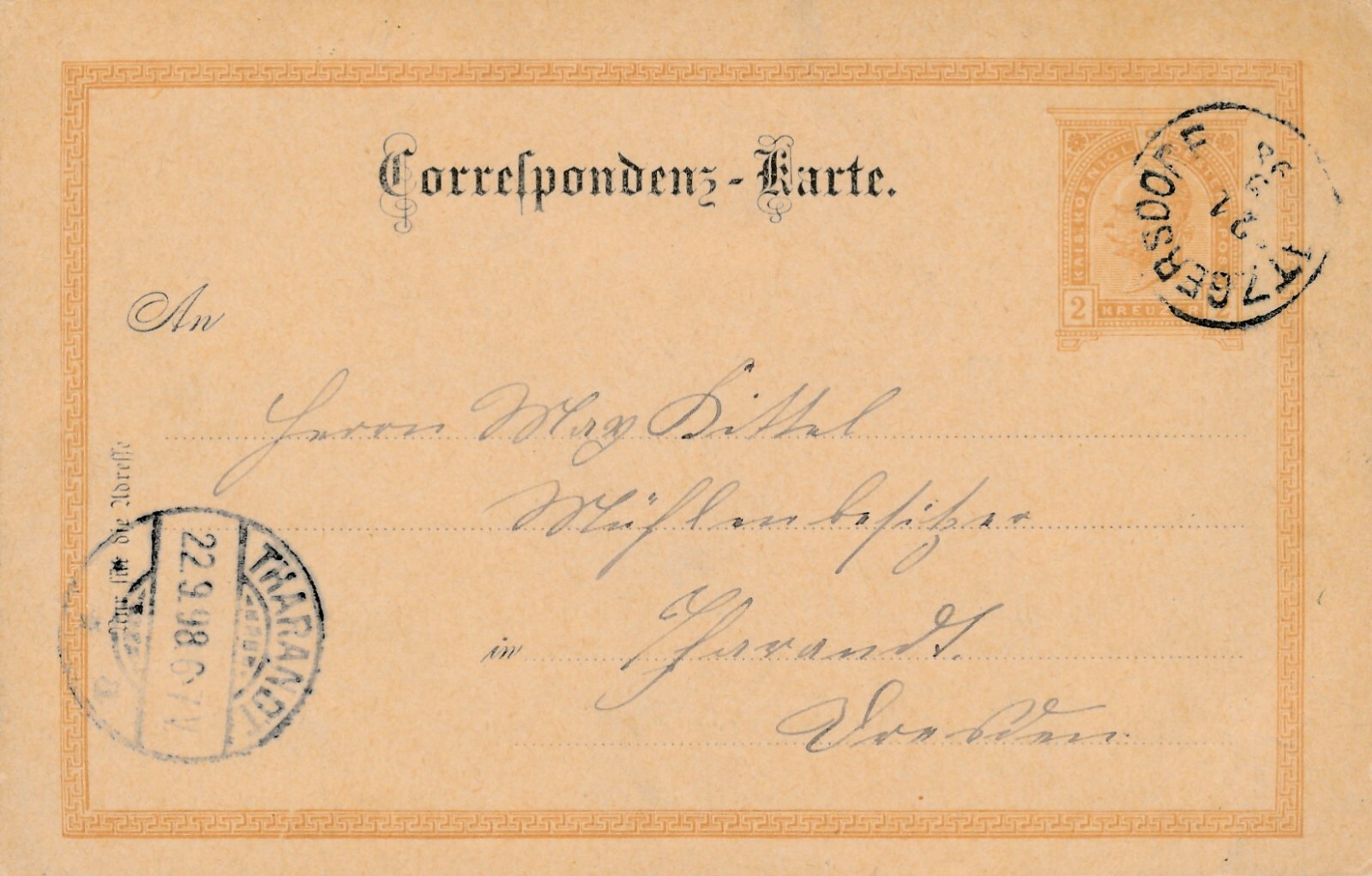 2 Kreuzer - Ganzsachen - Karte aus 1898 Atzgersdorf (11328)