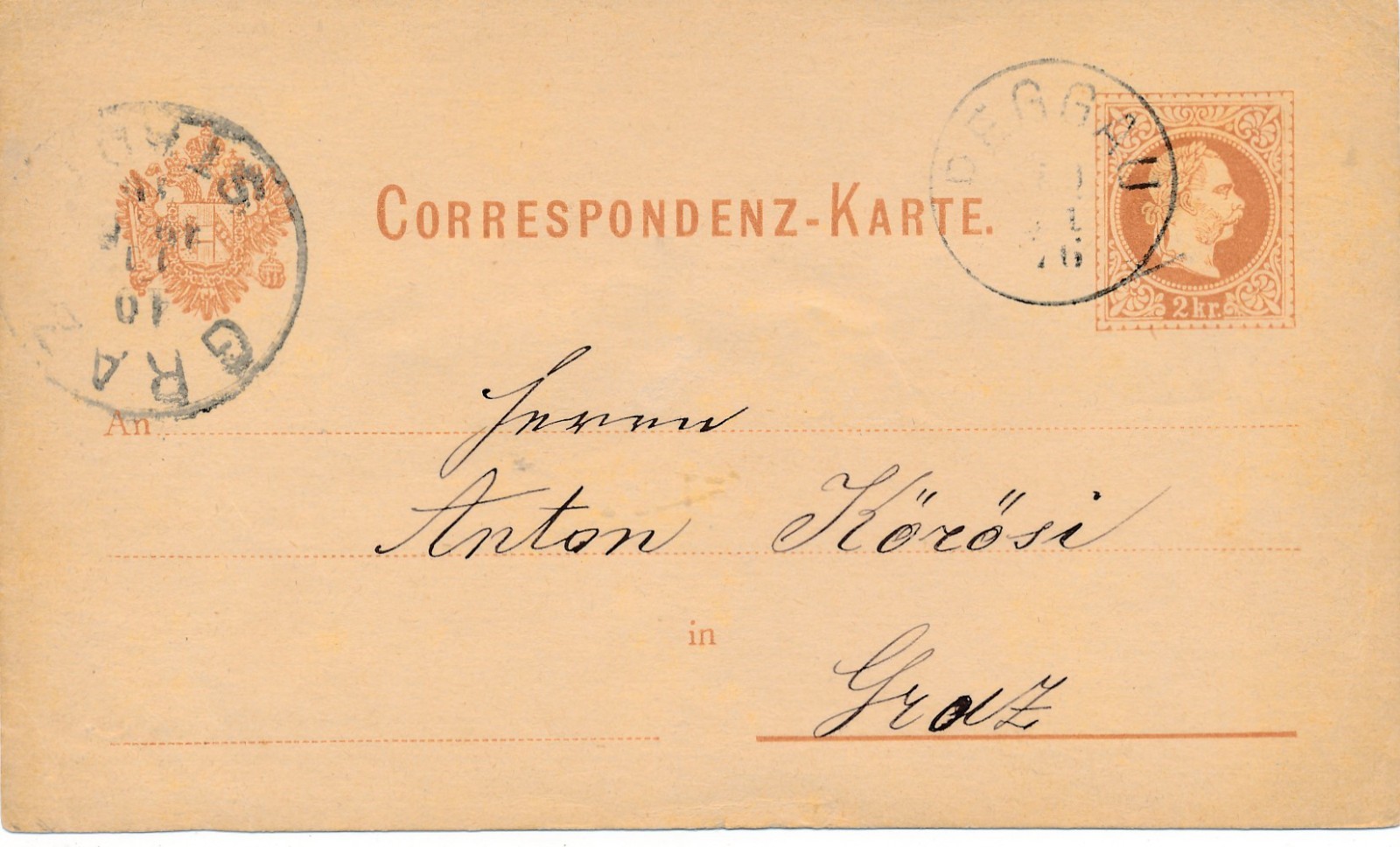 2 Kreuzer - Ganzsachen - Karte aus Deggau (16230)