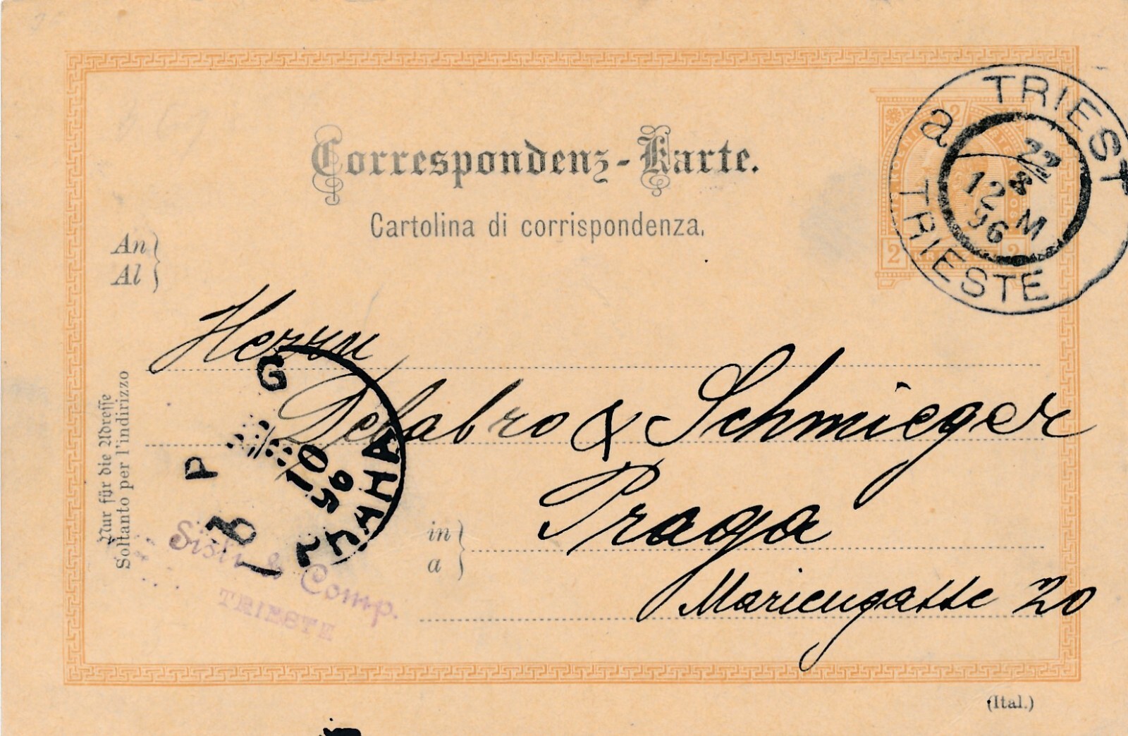 2 Kreuzer Ganzsachen - Karte (Ital) 1896 aus Triest (11598)