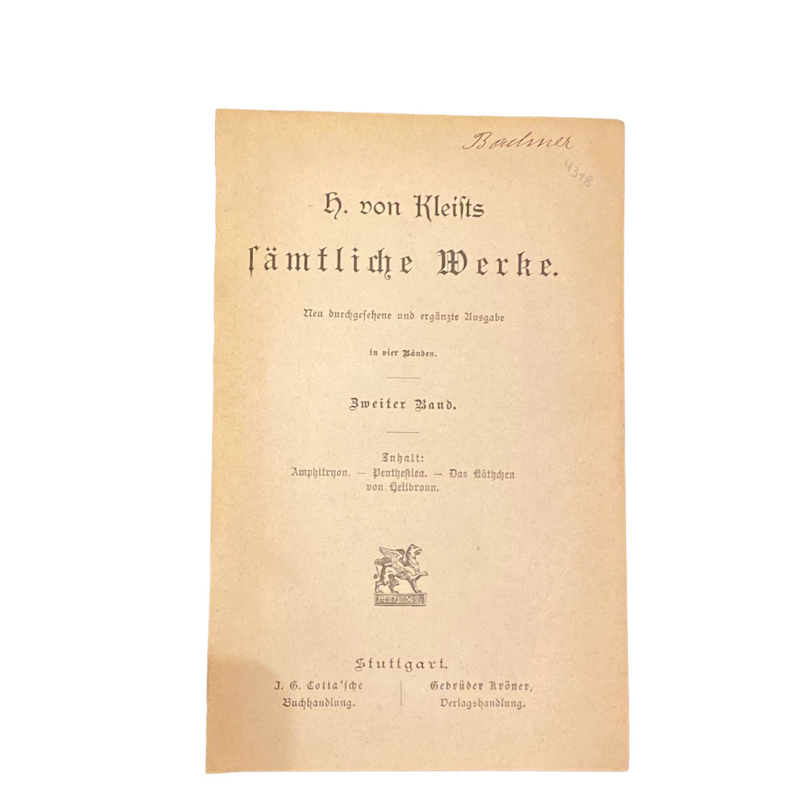 4318 H. VON KLEISTS SÄMTLICHE WERKE IN VIER BÄNDEN: ERSTER UND ZWEITER BAND