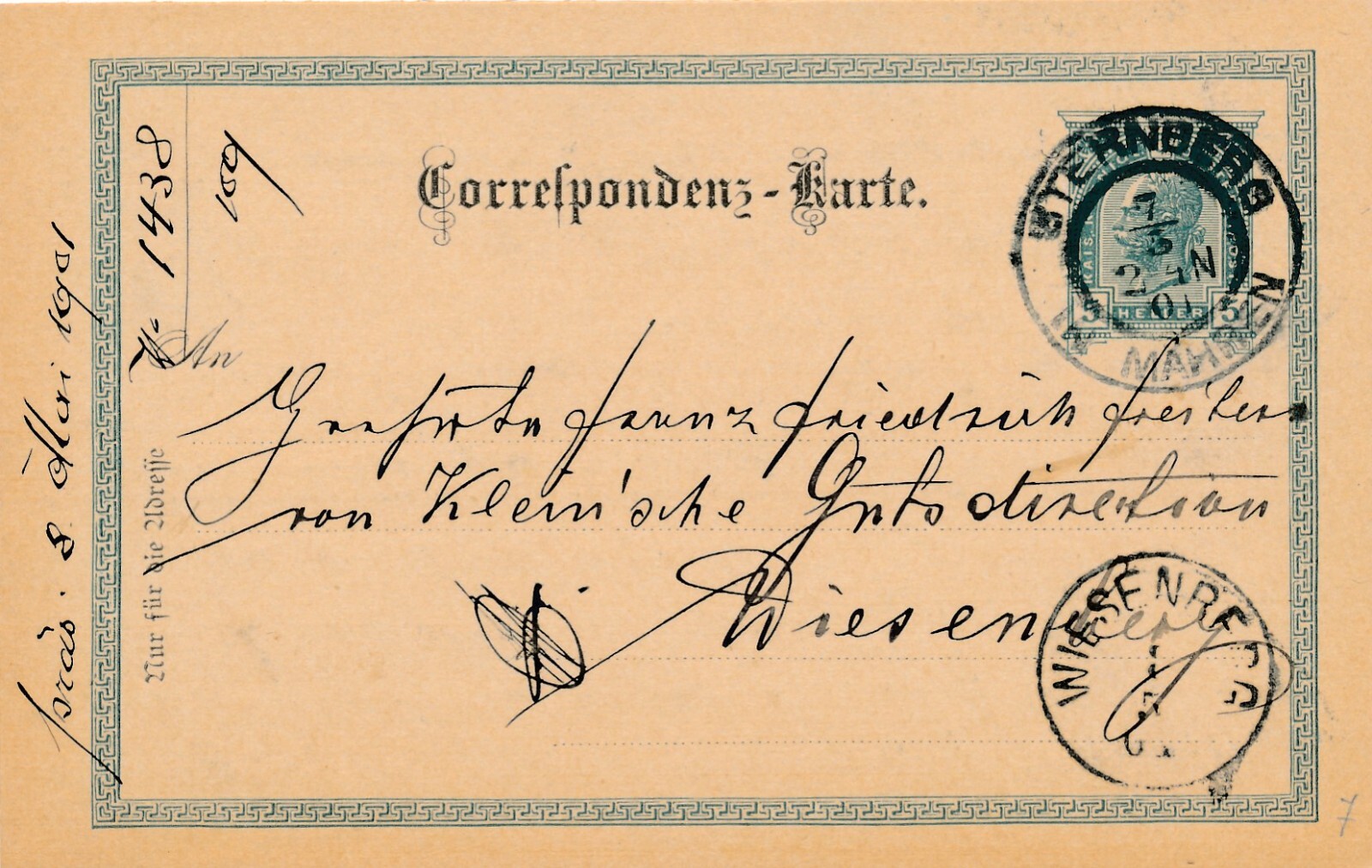5 Heller - Ganzsachen - Karte 1901 aus Sternberg (10647)