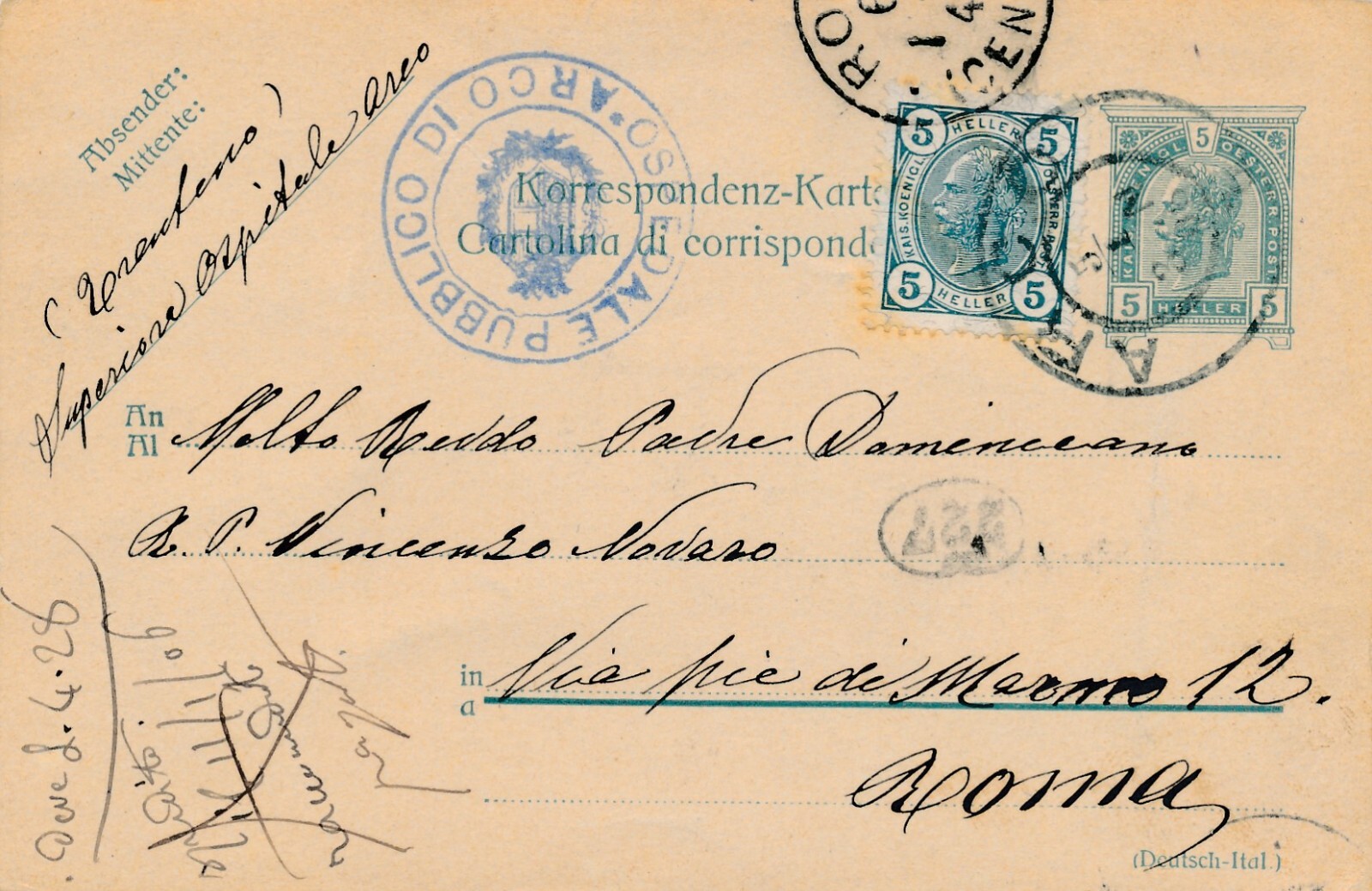 5 Heller - Ganzsachen - Karte 1905 aus Arco + 5 Heller ZF (12310)