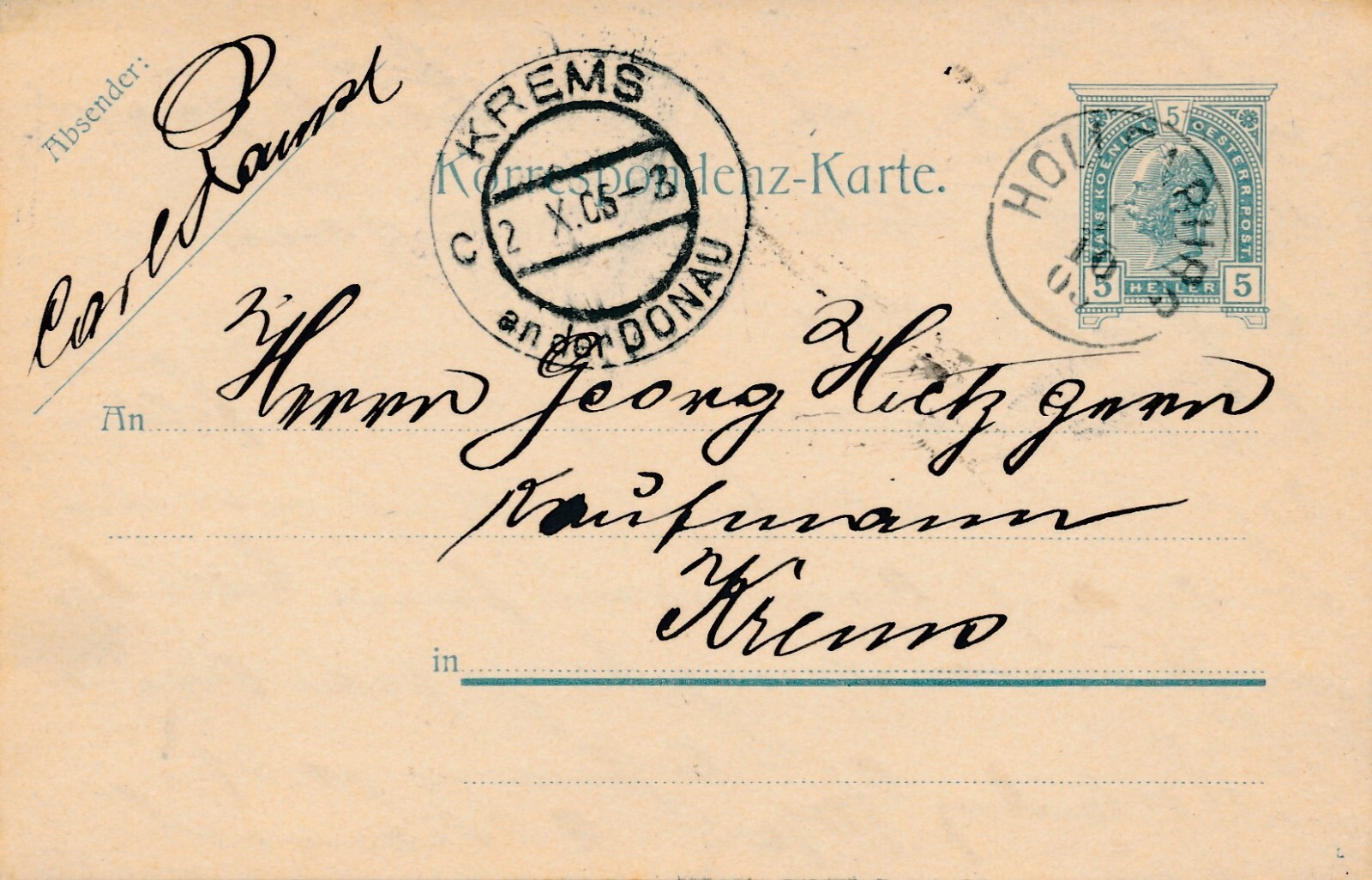 5 Heller Ganzsachen - Karte 1905 aus Hollenburg (11395)