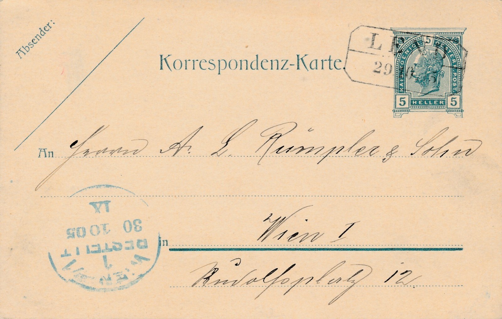 5 Heller Ganzsachen - Karte 1915 aus Lenu mit Kastenstempel (11396)---
