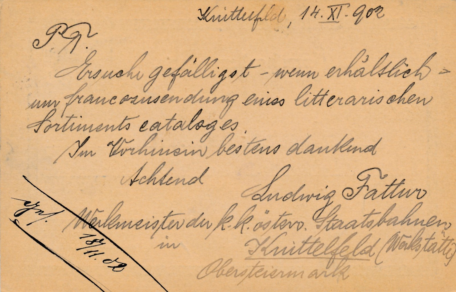 5 Heller Ganzsachen - Karte aus Knittelfeld (16207)