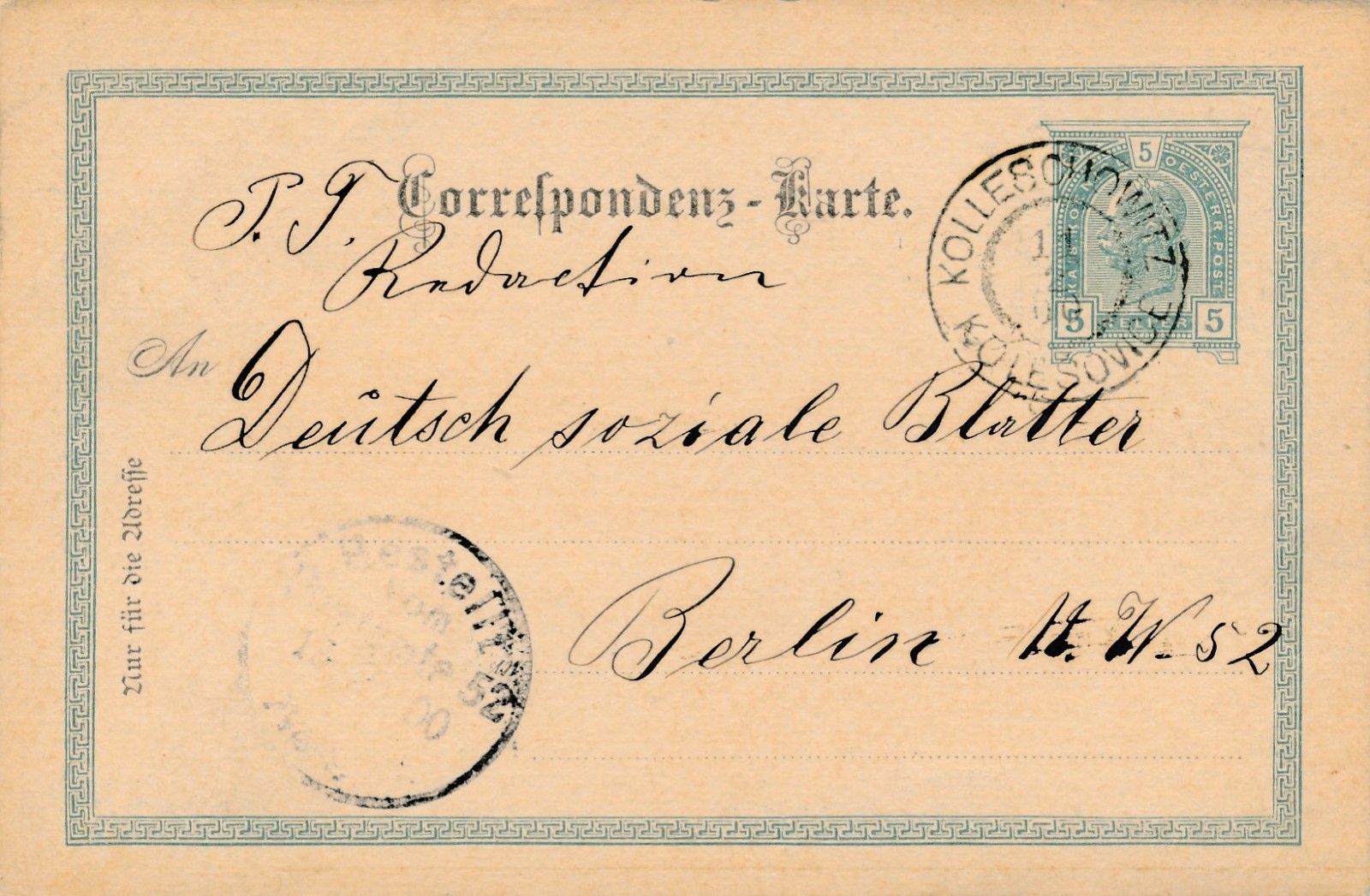 5 Heller Ganzsachen - Karte aus Kolleschwitz (16203)