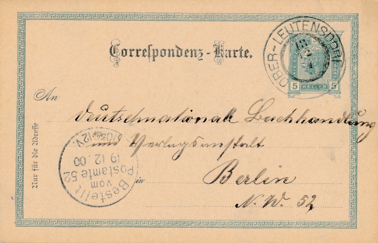 5 Heller Ganzsachen - Karte aus Ober Leutensdorf (16210)
