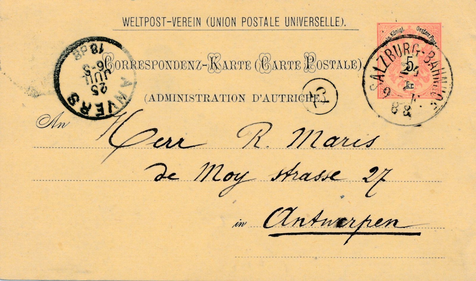 5 Kr. Ganzsachen - Karte 1888 aus Salzburg Bahnhof (10510)