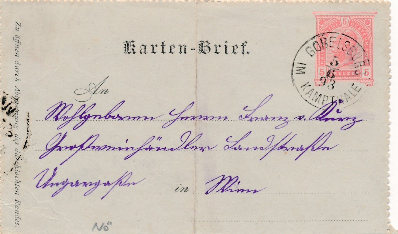 5 Kreuzer Ganzsachen - Karten Brief 1893 aus Göbelsburg (8944)