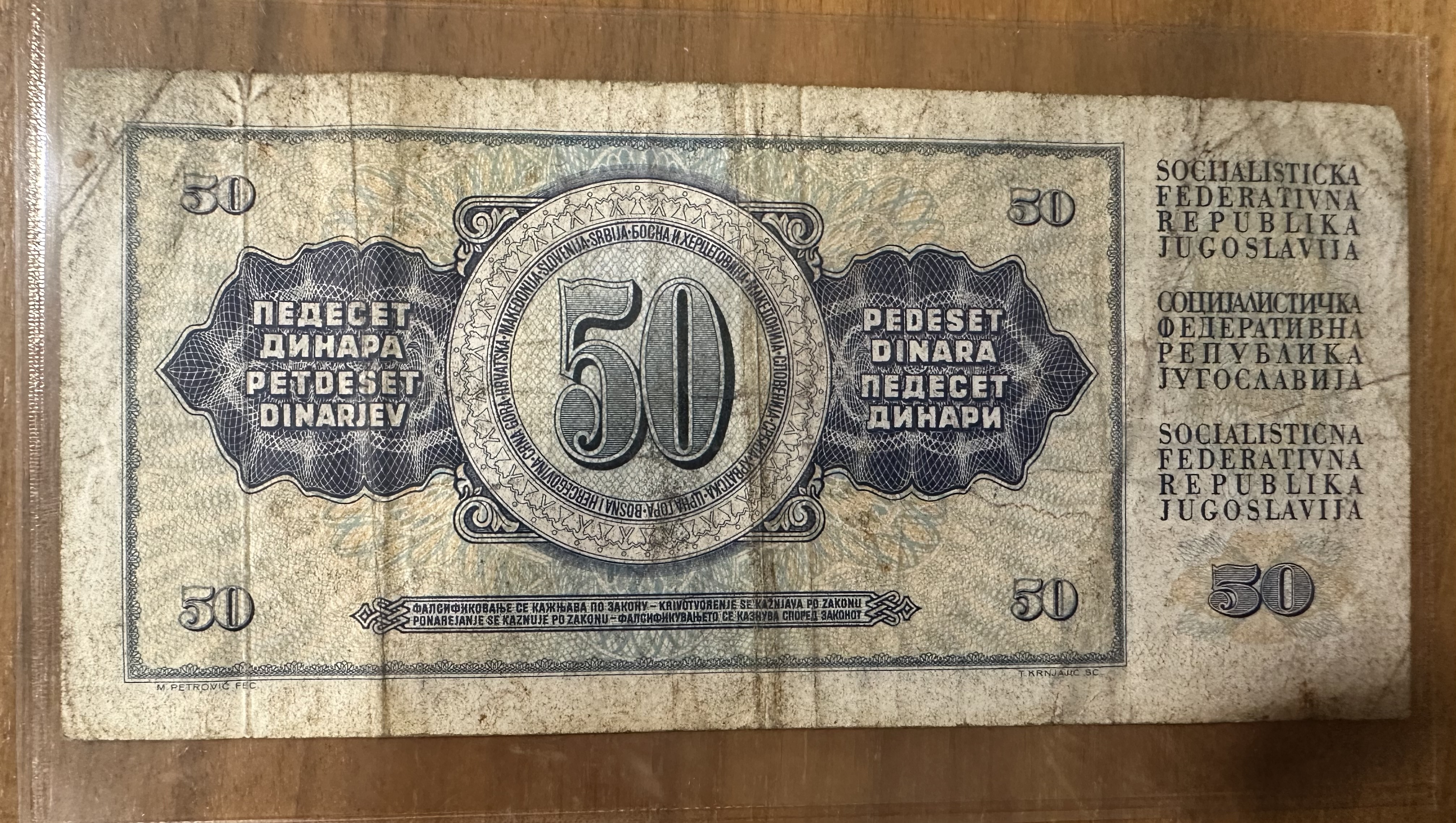 50 Dinar Banknote aus Jugoslawien - 1968 ausgegeben
