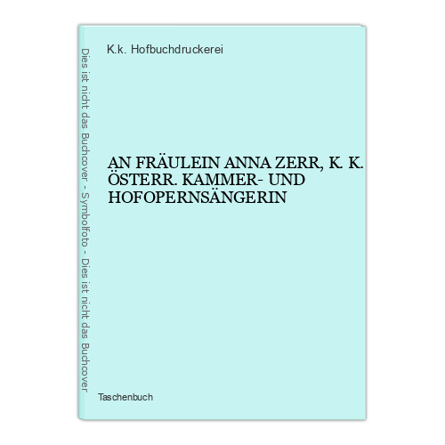 6543 AN FRÄULEIN ANNA ZERR, K.K. ÖSTERR. KAMMER- UND HOFOPERNSÄNGERIN