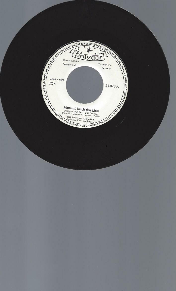 7" BIBI JOHNS UND KLEIN ROLF MAMMI LÖSCH DAS LICHT // PROMO