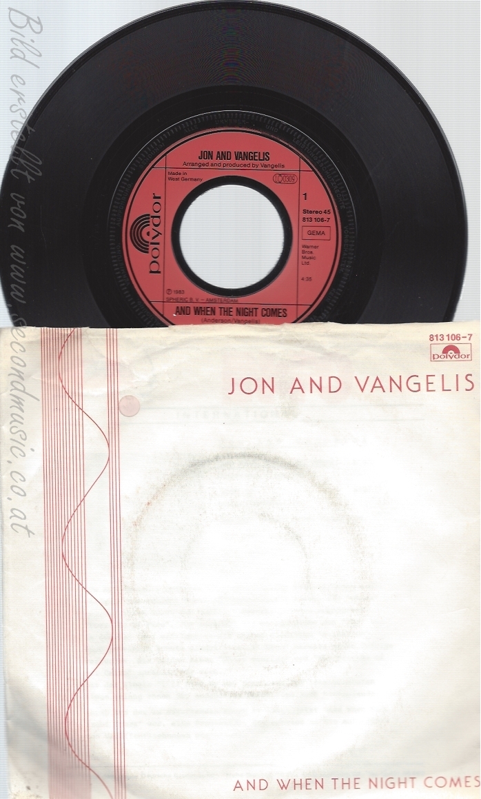 7" JOHN AND VANGELIS-- AND WHEN THE NIGHT COMES-