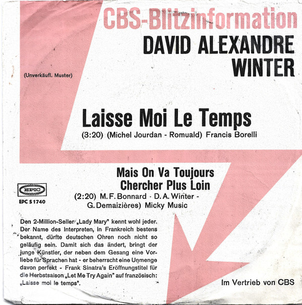 7", Single, Promo David Alexandre Winter - Laisse Moi Le Temps