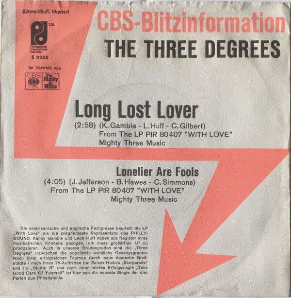 7", Single, Promo The Three Degrees - Long Lost Lover / Lonelier Are Fools