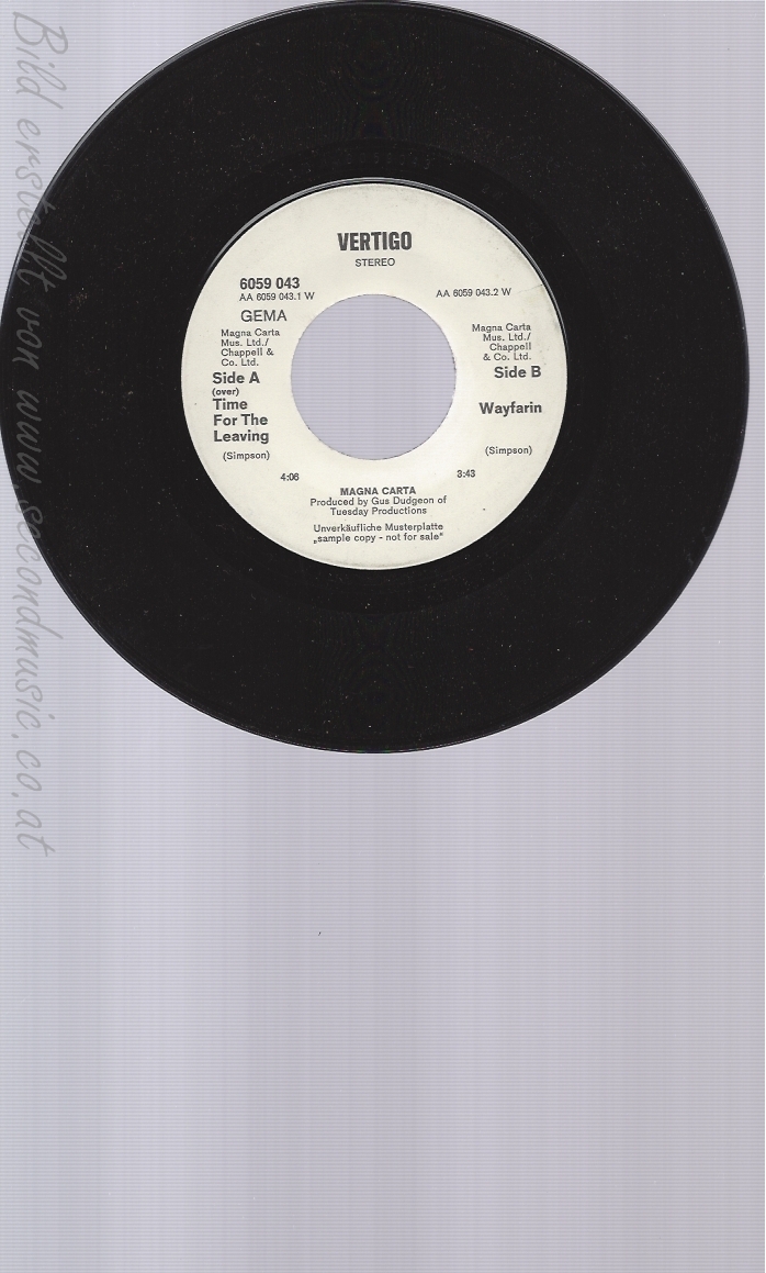 7"MAGNA CARTA--TIME FOR THE LEAVING--PROMO
