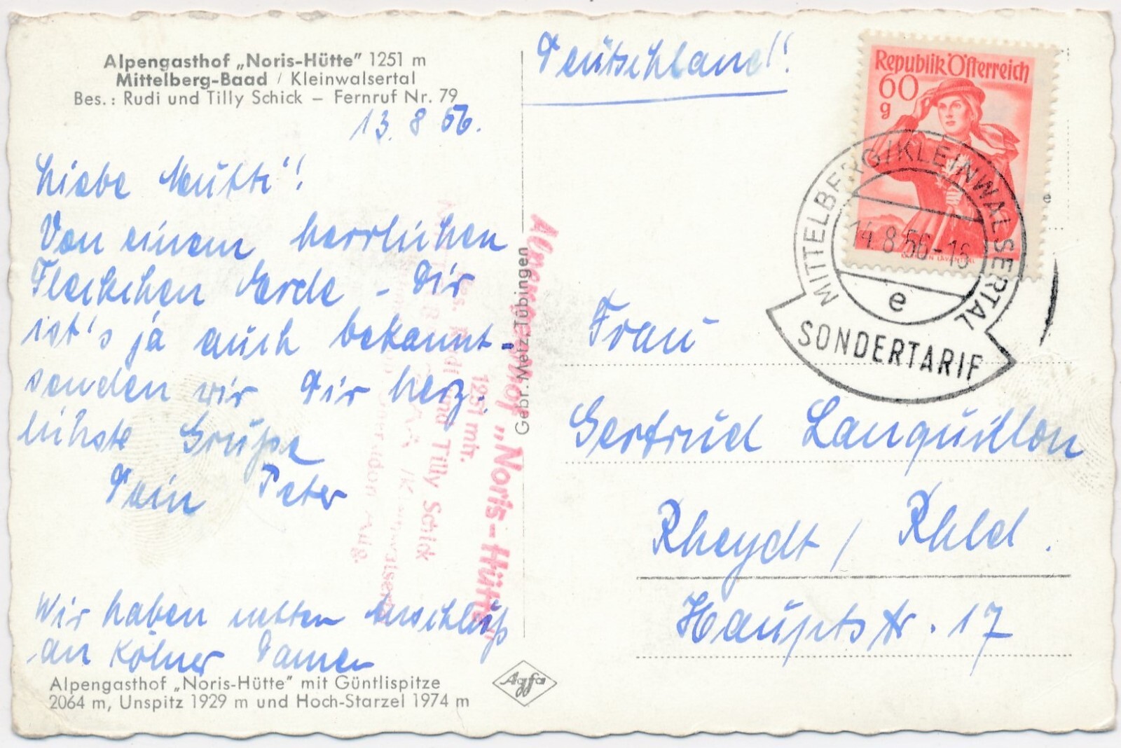 AK, Alpengasthof Noris Hütte, Mittelberg-Baad, Vorarlberg (S346)