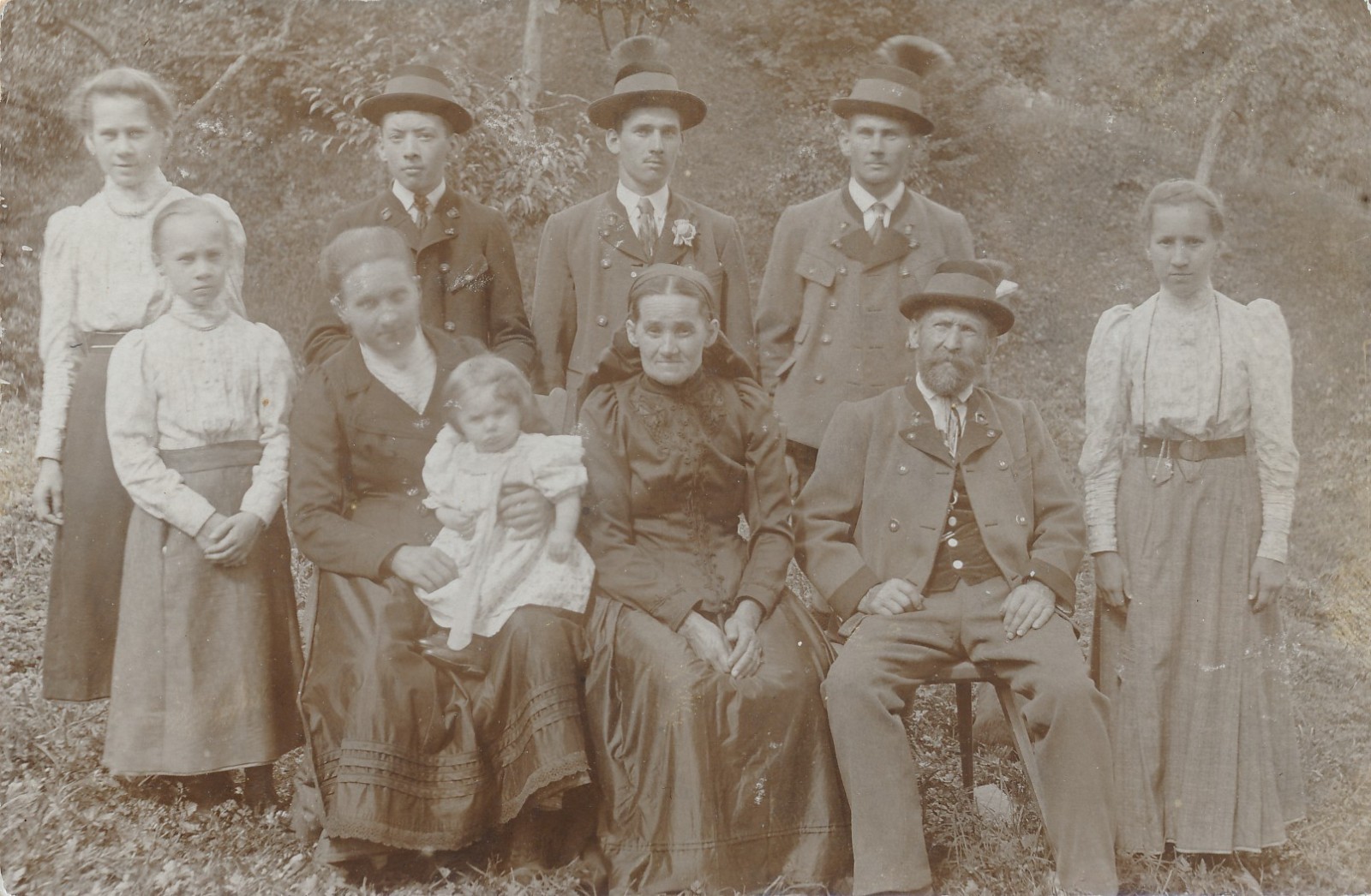 AK Annodazumals Familienfoto Männer mit Gamsbart (18219)